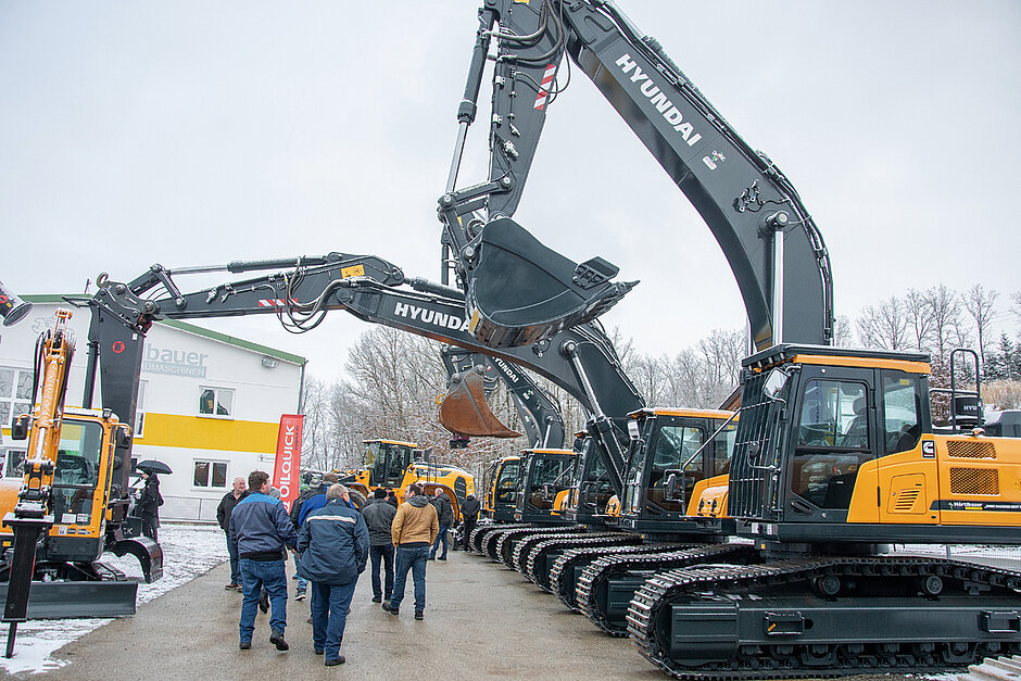 Knapp 1 000 Besucher fanden im Januar bei winterlichen Temperaturen im Niederbayerischen Stammhaus in Fürstenzell zusammen. Mit dabei eine große Bandbreite an Baumaschinen und -geräten und vielfältige Live Demo-Shows. Unter anderem zeigte sich Mörtlbauer als Hyundai-Händler mit über zehn Exponaten, darunter Mini- und Mobilbagger sowie tonnenschwere Raupenbagger, welche die Besucher hautnah erleben durften.