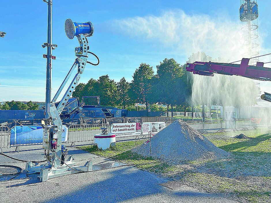 Der Einsatz von Druckluft ermöglicht einen geringen Wassereintrag und eine Staubminimierung von über 90 Prozent, wie Nebolex mitteilt. Dies sei je nach Material auch für die weitere Verarbeitung von enormer Wichtigkeit. Auch bei extremen Minustemperaturen ist der Betrieb der Anlage möglich. Frostschutz wird bei Nebolex durch isolierte Medienleitungen mit Begleitheizung und die Ausblasfunktion gewährleistet. Während des Wartebetriebs oder Bereitschaftszustands – die Nutzfunktionen sind temporär deaktiviert – wird die Anlage komplett entleert, sodass das System wasserfrei ist und es zu keinen Frostschäden kommen kann.d