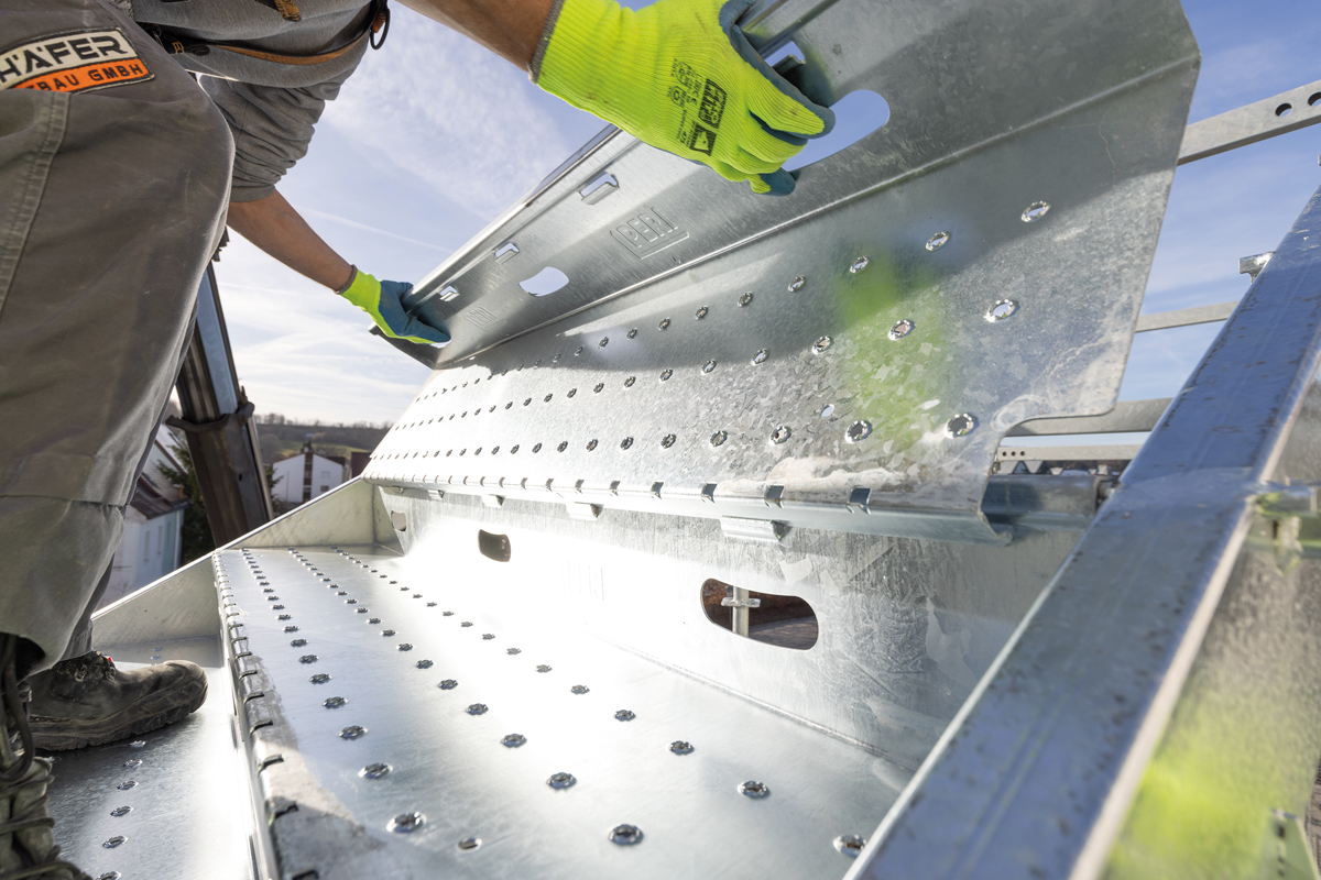 Gerüstbauer und Planer haben mit der Peri Up Treppe Public einen neuen Trumpf in der Hand: Die Treppe erfüllt nicht nur die gängigen Normen und Vorschriften, sondern überzeugt auch durch ihre durchdachte Konstruktion mit einer – analog zum Gerüstbaukasten – nahezu kupplungsfreien Montage. So ist die Treppe nicht nur flexibel, sondern auch schnell montiert, was im Baustellenalltag wertvolle Zeit und damit bares Geld sparen kann. Obwohl sie auf hohe Traglasten bis zu 7,5 kN/m² ausgelegt ist, sind die Systembauteile handlich und sehr leicht: So lässt sich die Treppe schnell und unkompliziert errichten, indem die ineinandergreifenden Treppenstufen zügig von unten nach oben eingelegt werden. Zusätzliches Werkzeug braucht es dabei nicht. Auch auf bauseitige Veränderungen auf der Baustelle können Anwender so kurzfristig reagieren. Durch die vollumfängliche Lösung inklusive Höhenausgleichen und optionalen Handläufen werden zeitraubende Improvisationen und kostspielige Anpassungen zu einem Problem der Vergangenheit. So kann die Effizienz auf der Baustelle erhöht und Fehler minimiert werden.