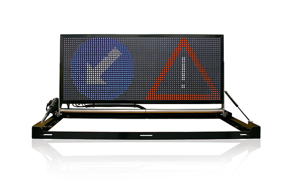 Die LED-Anzeige selbst ruht laut Berghaus in einem pulverbeschichteten Edelstahlrahmen (L × B × H: 1 830 mm × 1 023 mm × 200 mm), der an der Reling oder mit einem Lastenträger auf dem Dach eines Einsatz- oder Sicherungsfahrzeuges befestigt und mittels 12-V-Leitung versorgt wird. Im zusammengeklappten Zustand wird die LED-Matrix vor Witterungseinflüssen mit der Anzeigefläche nach unten geschützt.