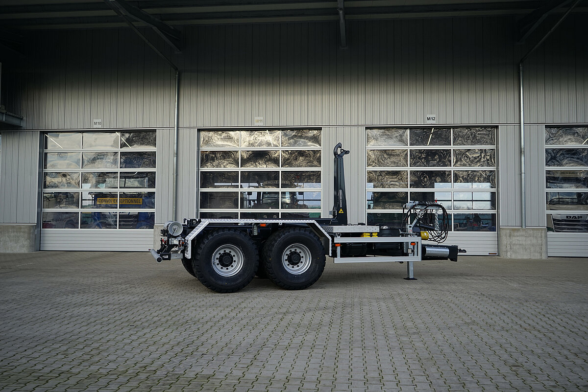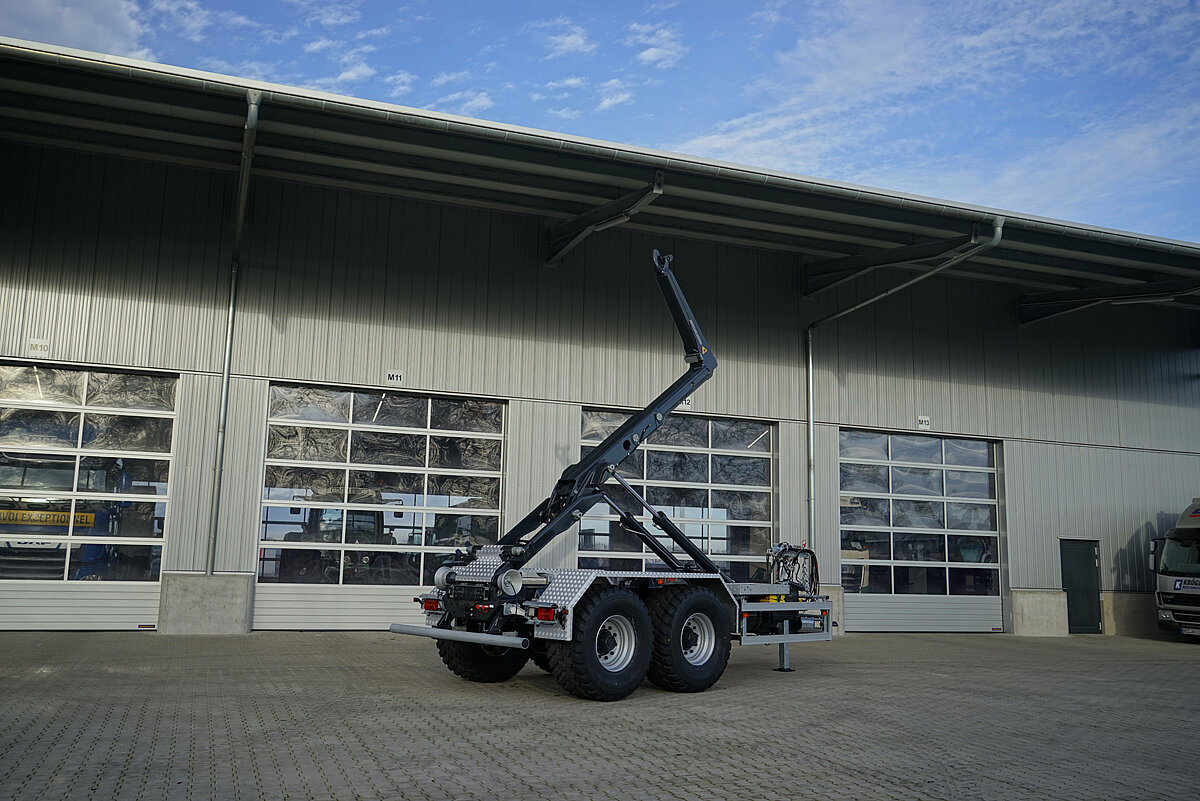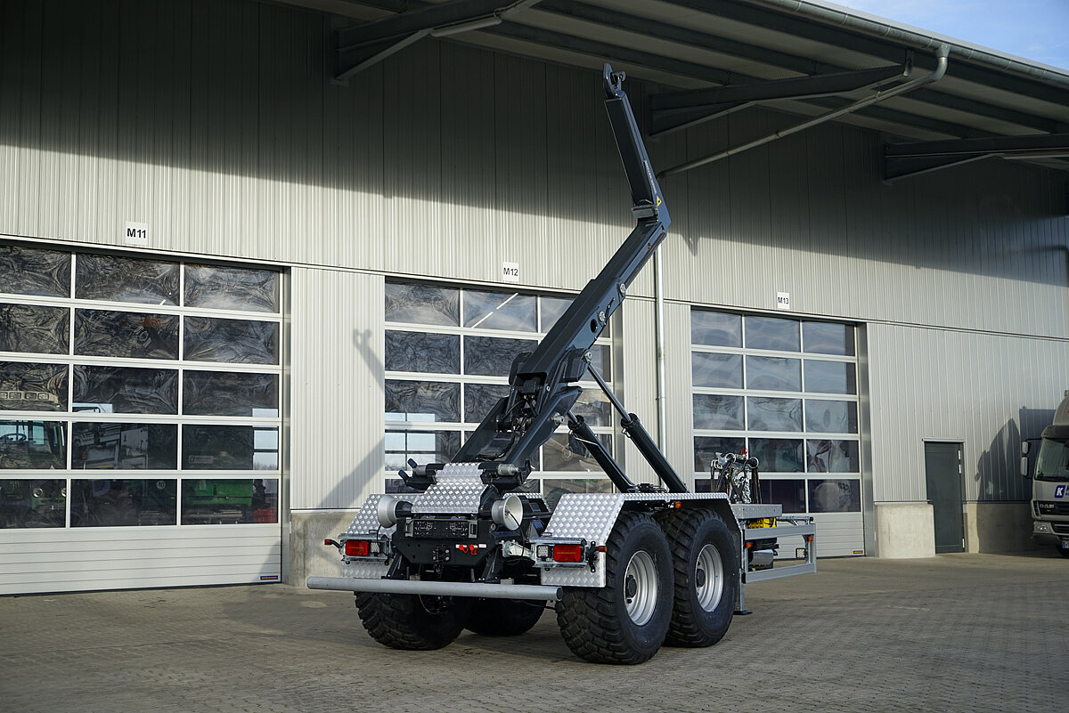 Mit dem Hakenliftanhänger »THL 14« bringt Kröger aktuell ein neues Arbeitsgerät auf den Markt, das durch Vielseitigkeit, robuste Bauweise und modernste Ausstattung überzeugen soll. Ob im Standard-Schlepperbetrieb, im Lkw-Betrieb oder mit Bordhydraulik, der »RK14.55« von Meiller soll hier flexible Einsatzmöglichkeiten für unterschiedlichste Transportanforderungen aufbieten. Die Zulassung für Geschwindigkeiten von 40 bis 105 km/h ermöglicht sowohl den Einsatz im Nahverkehr als auch auf Kraftfahrtstraßen und Autobahnen.