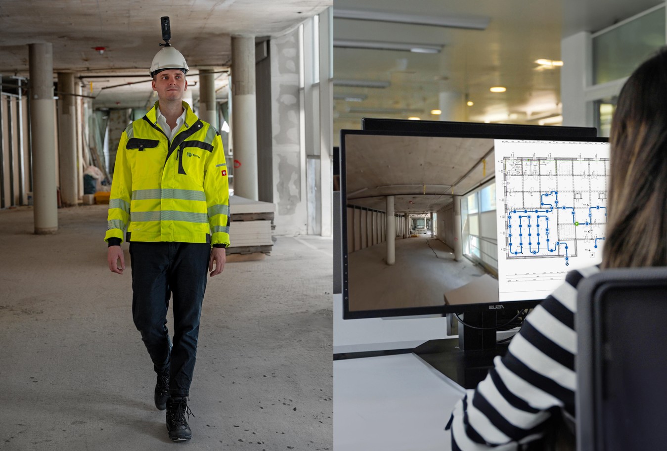 360°-Aufnahmen erweitern die klassische Dokumentation um eine ganzheitliche Perspektive. Mit modernen Kameras, die auf dem Baustellenhelm im Hamdumdrehen montiert werden, können ganze Räume oder Bauabschnitte im Rahmen eines einfachen Rundgangs vollständig erfasst werden. Die Aufnahmen werden anschließend positionsgenau auf 2D-Baupläne gelegt und entlang des tatsächlichen Begehungswegs verortet. So entsteht eine lückenlose visuelle Dokumentation des Baufortschritts, die jederzeit erneut aufgerufen und aus verschiedenen Blickwinkeln betrachtet werden kann. Für Bauleitung und Qualitätssicherung bedeutet dies einen deutlichen Informationsgewinn: Statt einzelner Bildausschnitte steht der vollständige räumliche Kontext zur Verfügung. Schnittstellen zwischen Gewerken, Platzverhältnisse oder der Zustand angrenzender Bauteile lassen sich im Zusammenhang beurteilen.