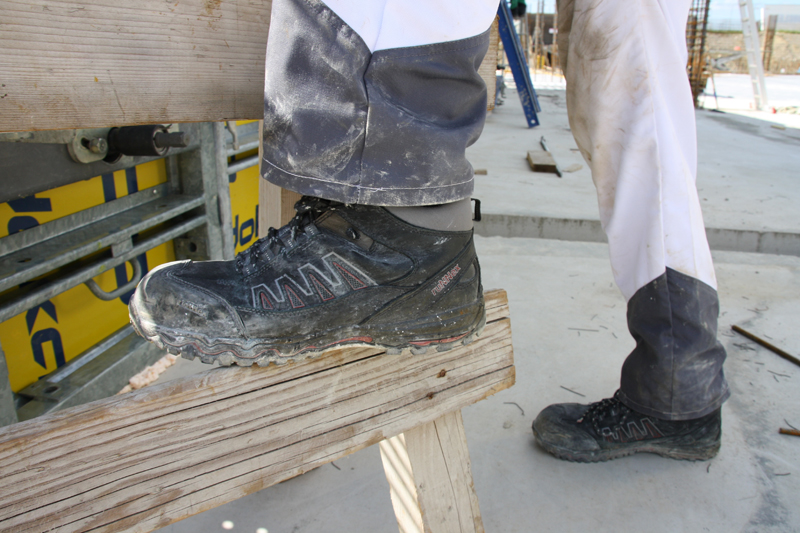 Noch einen draufsetzen konnte nach Angaben der Bauprofis der »VX 7600 PERB S3«. Alfons Eibeler, der diesen Schuh mehrere Wochen am Stück getragen hatte, lobte den Tragekomfort. »Das Modell hat mir richtig gut gefallen. An der Lasche, an den Seiten und oberhalb drückt gar nichts. Außerdem haben die Zehen richtig Platz, was mir echt gut gefallen hat.« Gleichzeitig stellte Eibeler fest, dass sich der »VX 7600« auch nach längerem Tragen komfortabel anfühlt. »Du ziehst den Schuh am nächsten Tag wieder an, und er fühlt sich einfach gut an.« Begrüßt hat der Kranfahrer gleichzeitig, wie einfach der Schuh zu handhaben war: Aus- und Anziehen gelang selbst nach dauerhaftem Tragen problemlos. Und damit spricht der erfahrene Facharbeiter einen wunden Punkt an: Sicherheitsschuhe müssen den ganzen Arbeitstag lang getragen werden. Häufig zieht der Träger diese erst spät am Abend nach zehn, manchmal zwölf Stunden erst wieder aus – und das täglich. Bietet der Schuh dabei nicht ausreichend Platz oder drückt und zwickt es an den Seiten, kann das zu unangenehmen Schmerzen führen.