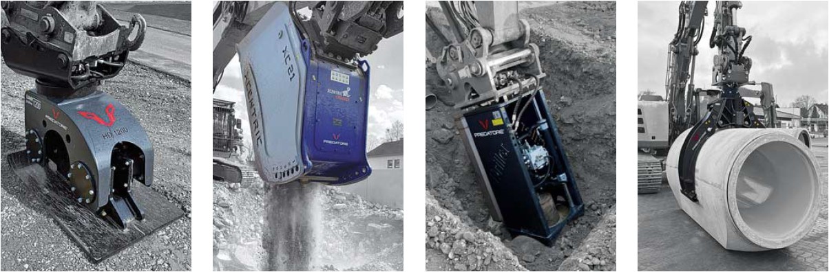 Mit seiner Anbaugerätetechnologie wendet sich Predatore Machines an das Baugewerbe, den GaLaBau, die Recycling-Branche sowie Industriekunden. Zur Produktpalette zählen neben Schaufelseparatoren, Crushern und Anbauverdichtern auch Driller, Kernbohrgeräte, hydraulische und mechanische Rohrgreifer, diverse Anbaugeräte und Hebezeuge vom Verbau- bis zum Schachtgreifer sowie u. a. OilQuick-Schnellwechselsysteme.