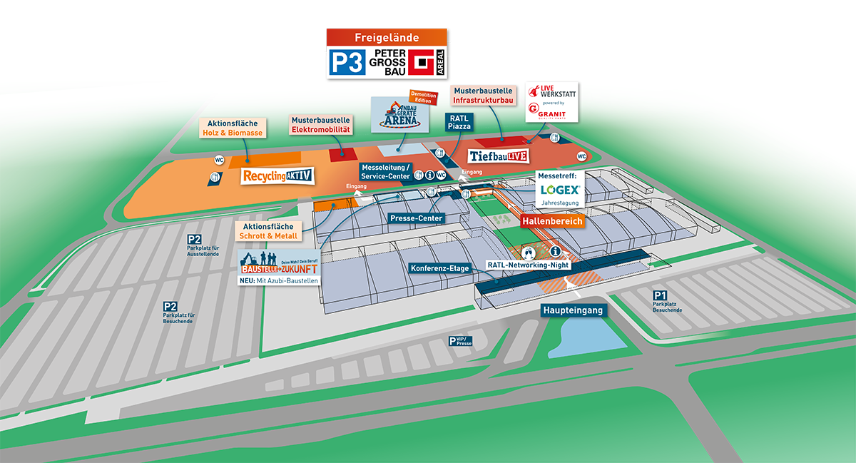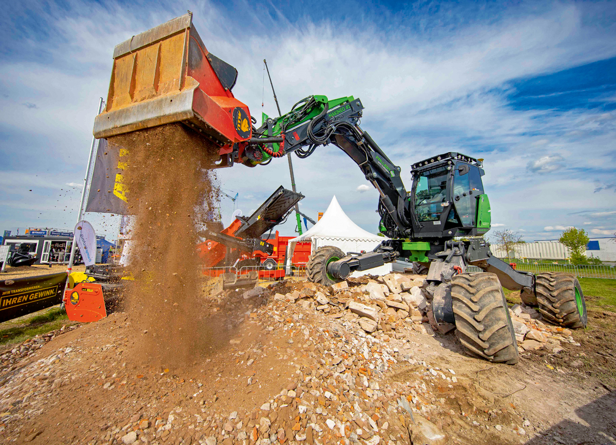 Die Besuchenden erwartet ein überarbeitetes fokussiertes Showkonzept unter dem Thema »Abbruch und Aufbereitung mineralischer Bauabfälle«. Dreimal pro Tag wird erlebbar, wie reibungslos abgestimmte Systeme in der Kreislaufwirtschaft zusammenspielen. In der Anbaugeräte-Arena rückt die gesamte Prozesskette vom Abbruchmaterial zum wiederverwertbaren Baustoff in den Fokus: von der selektiven Rückbauarbeit bis hin zur nachhaltigen Aufbereitung mineralischer Bauabfälle. Zu den Teilnehmenden gehören Anbaugerätehersteller und -händler wie HS-Schoch, Dappen, NB Baumaschinen SkanCraft, MaC-Rock oder Seifert Maschinenbau. Das Herzstück der Arena sind leistungsstarke Abbruchbagger von Zeppelin Baumaschinen, Kiesel und JCB Deutschland – bestückt mit Schnellwechseltechnik von OilQuick.