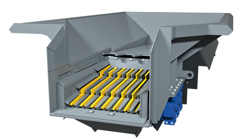 Vielfach wird ein Stabrost zur Vorabsiebung des Feinanteils und der kleinen Korngrößen eingesetzt. Doch habe dieser den Nachteil, so unterstreicht Rubble Master, dass er aufgrund seiner starren Bauweise speziell bei feuchtem, klebrigem oder lehmigem, bindigem Material mit der Zeit zuwachse und die Effizienz der Vorabsiebung so sinke. Selbst bei trockenem Material gelte die Absiebrate oft nicht als ideal. Damit komme erneut der Großteil des Materials in die Brechkammer oder es werde der Einlauf zur Brechkammer blockiert, sodass sich der Materialfluss verlangsame. Wiederum habe das den Effekt, dass der Brecherdurchsatz sinke, der Verschleiß steige und der Brecher wegen der notwendigen Reinigung des Stabrosts stillstehe.