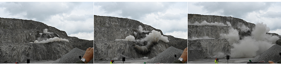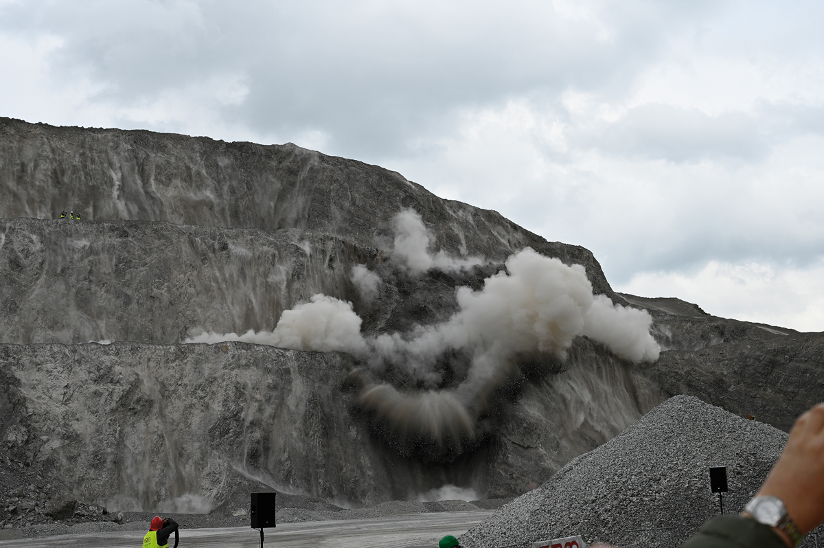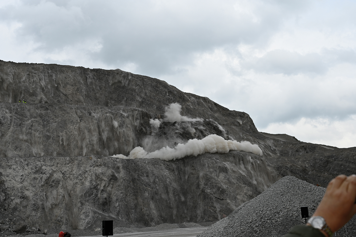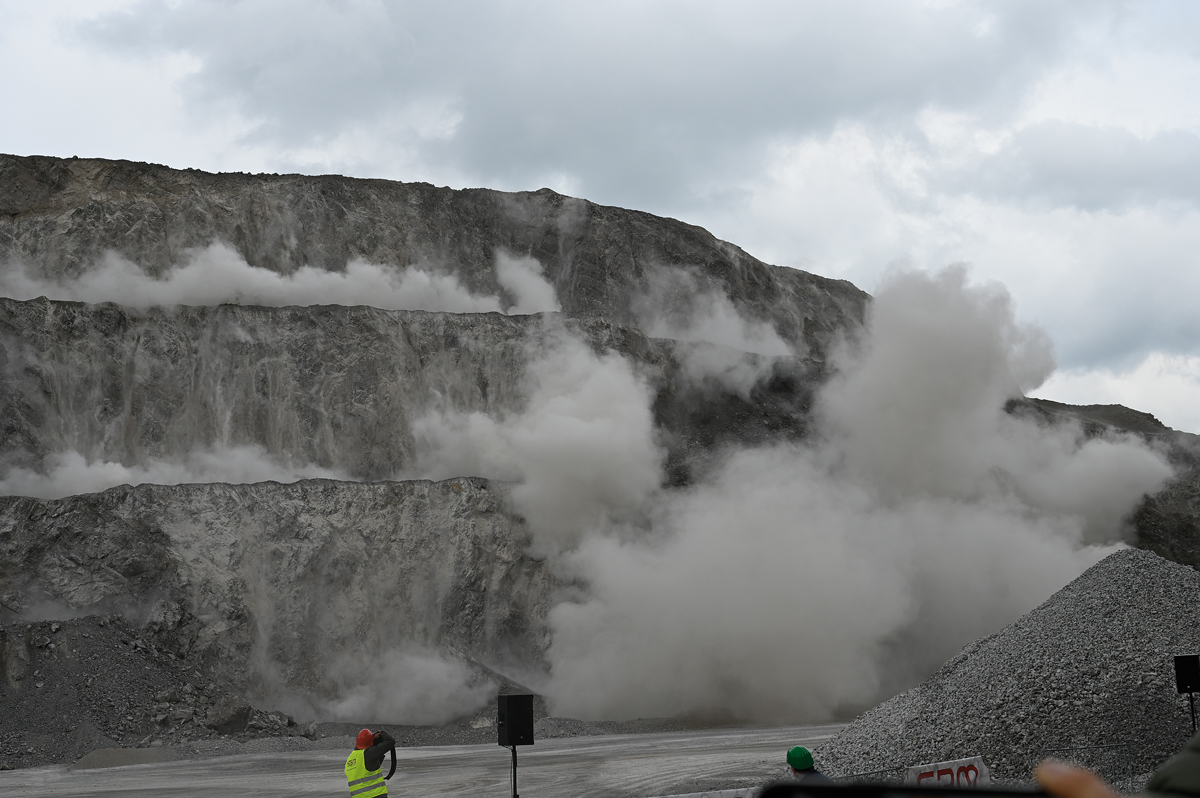 Die Sprengung des harten Dolomit-Gesteins sorgte für einen gelungenen Event-Auftakt im Steinbruch.