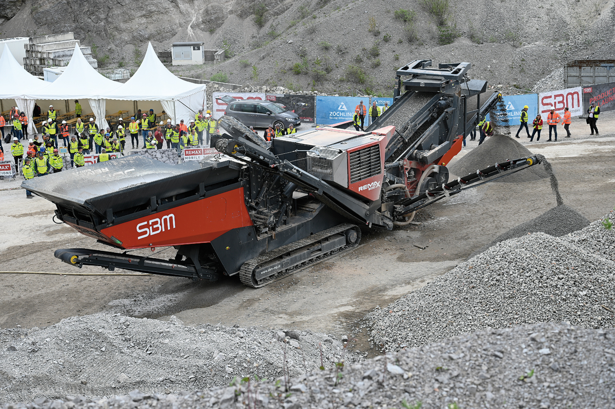 Bereits seit Jahresbeginn unternehmen SBM Mineral und die Hans Zöchling GmbH weitreichende Feldtests. Unter realen Baustellenbedingungen wird unterschiedlichstes Material im Steinbruch Ramsau verarbeitet, inzwischen bereits mehrere Zehntausend Tonnen. Laut SBM ergaben sich dabei wirtschaftliche Durchschnittswerte von 34 l/h bis 46 l/h Diesel beziehungsweise eine Leistungsaufnahme von 140 kWh bis 200 kWh. »Dieser SBM-typische Verbrauchsvorteil war sicherlich auch entscheidend dafür, dass die auf der Bauma spürbare Begeisterung sehr schnell in echtes Kaufinteresse und bereits lange vor Marktstart in konkrete Bestellungen umschlug«, berichtete Helmut Haider. »Neben unseren eigenen Händlern zeichneten bereits auch die ersten Endkunden – wir gehen davon aus, dass wir unsere Produktionsplanungen für die Remax 600 im nächsten Jahr deutlich nach oben anpassen dürfen.«