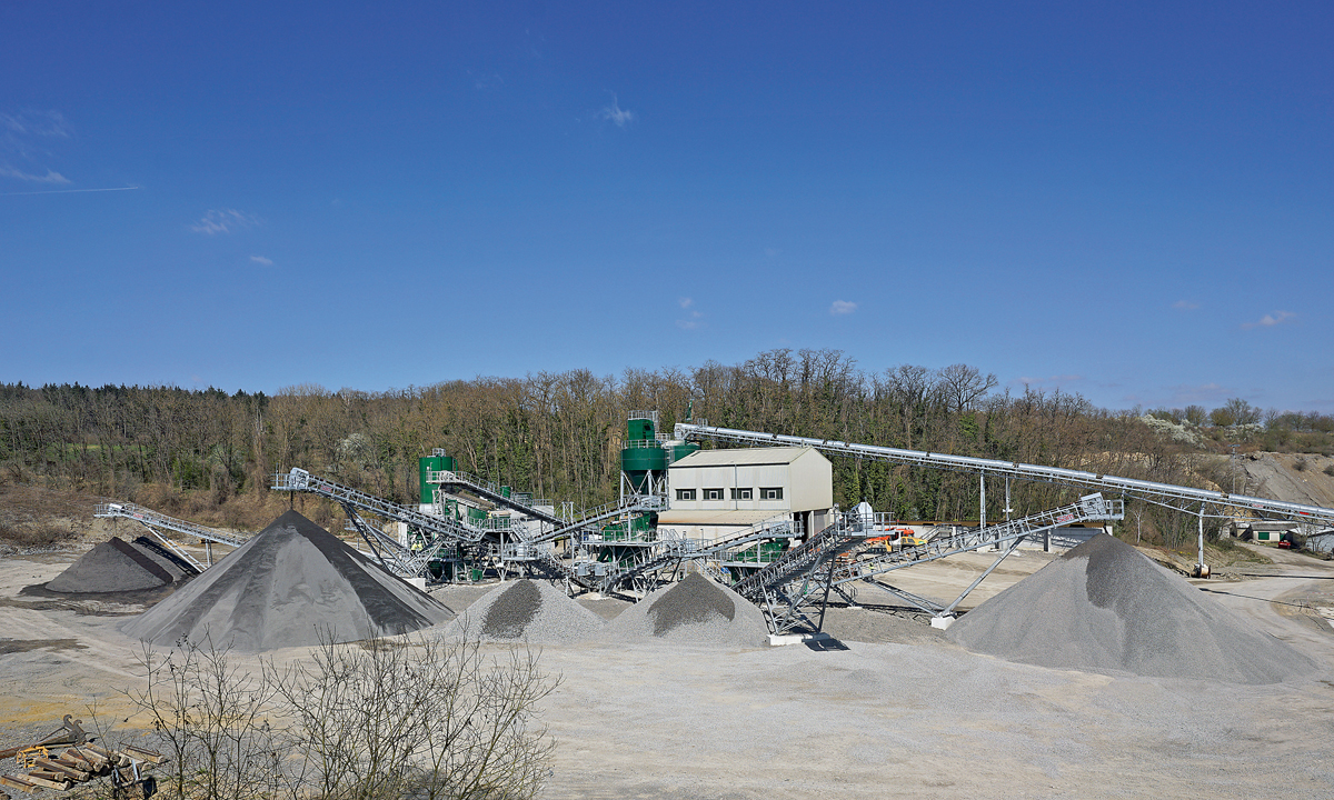 Seit den frühen Sechzigerjahren lieferte der Steinbruch Nußloch Kalkstein und Mergel für das Zementwerk Leimen. Mit der Einstellung der Klinkerproduktion am Heidelberg Materials-Standort Anfang 2023 stoppte auch der Abbau des hochwertigen Gesteins, das über einen Walzenbrecher vorzerkleinert (0/280 mm) per 2-km-Landband zu Zwischensilos und von dort aus über eine rund 5 km lange Materialseilbahn in das Zementwerk gelangte. Als Folgenutzung des insgesamt rund 250 ha großen Abbaubetriebes errichtete die ebenfalls 2023 neu strukturierte Konzern-Rohstoffsparte Heidelberg Materials Mineralik DE ein neues Werk im Steinbruch, das nunmehr hochwertige Betonzuschlagstoffe und Straßenbau-Materialien produziert.Dabei erforderte die bestehende technische Ausrüstung große Investitionen in neue Aufbereitungstechnik.