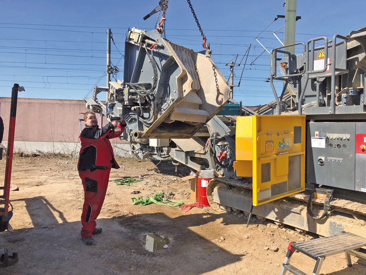 Sandor Schlei: Von Wartungsaufträgen über Instandhaltung decken wir bis zur Reparatur alles im Vor-Ort-Service ab. Unser Tagesgeschäft bezieht sich auf die Fehlersuche und Diagnose – und damit auf die Reparatur und Instandhaltung unterschiedlichster Maschinen. Spezialisiert haben wir uns dabei auf den Service für Brech- und Siebanlagen sowie Recycling-Lösungen. Alltäglich sind für uns allerdings auch der Umgang mit Umwelttechnik und der professionelle Verschleißschutz. Klares Ziel: Wir sorgen dafür, dass die Anlagen (wieder) sauber laufen, um Stillstand zu vermeiden.