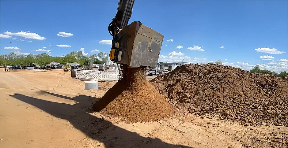 Egal ob es um das Ausheben eines kleinen Grabens, um Geländemodellierungen oder Rohr- und Kanalarbeiten geht – schon bei kleineren Erdarbeiten können sich schnell Tonnen an Erdmaterial ansammeln, die bewegt werden müssen. Idealerweise sollte ausgehobener Boden auch gleich wieder am Herkunftsort eingebaut werden. Über den Einsatz eines MB Crusher Schaufelseparators wird aus dem mit Störmaterialien vermischten Bodenaushub schnell und unkompliziert wiederverwertbares Verfüllmaterial. Hierbei wird zunächst der Feinkornanteil aus dem Aushubmaterial separiert und dieses anschließend direkt zurück in den Leitungsgraben gefüllt. Es entfallen lange Wege und die Entsorgungsmengen reduzieren sich spürbar.