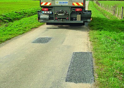 Wie bei jeder Mischung aus einem bituminösen Produkt und einem Zuschlagstoff ist es wichtig, die Menge der Emulsion und des Schotters korrekt zu dosieren. Die von Secmair entwickelte Greenswift-Maschine sichert ein festes Mischverhältnis von Bindemittel und Zuschlagstoffen, um eine homogene Mischung ohne Ausblutungsgefahr zu erhalten. Die Dosierung erfolgt kontinuierlich per Computer im Fahrerhaus des Greenswift-Lkw. Die Emulsionsdosierpumpe passt unabhängig vom benötigten Volumen des Endprodukts die eingestellte Mischmenge an. Darüber hinaus sichere die Konstruktion des Aufbringrings, so der Anbieter, eine perfekte Beschichtung über die gesamte spezifische Oberfläche der Materialien. Alle Zuschlagstoffe sind somit »verleimt«, was eine der manuellen Arbeit weit überlegene Verarbeitungsqualität gewährleisten soll.