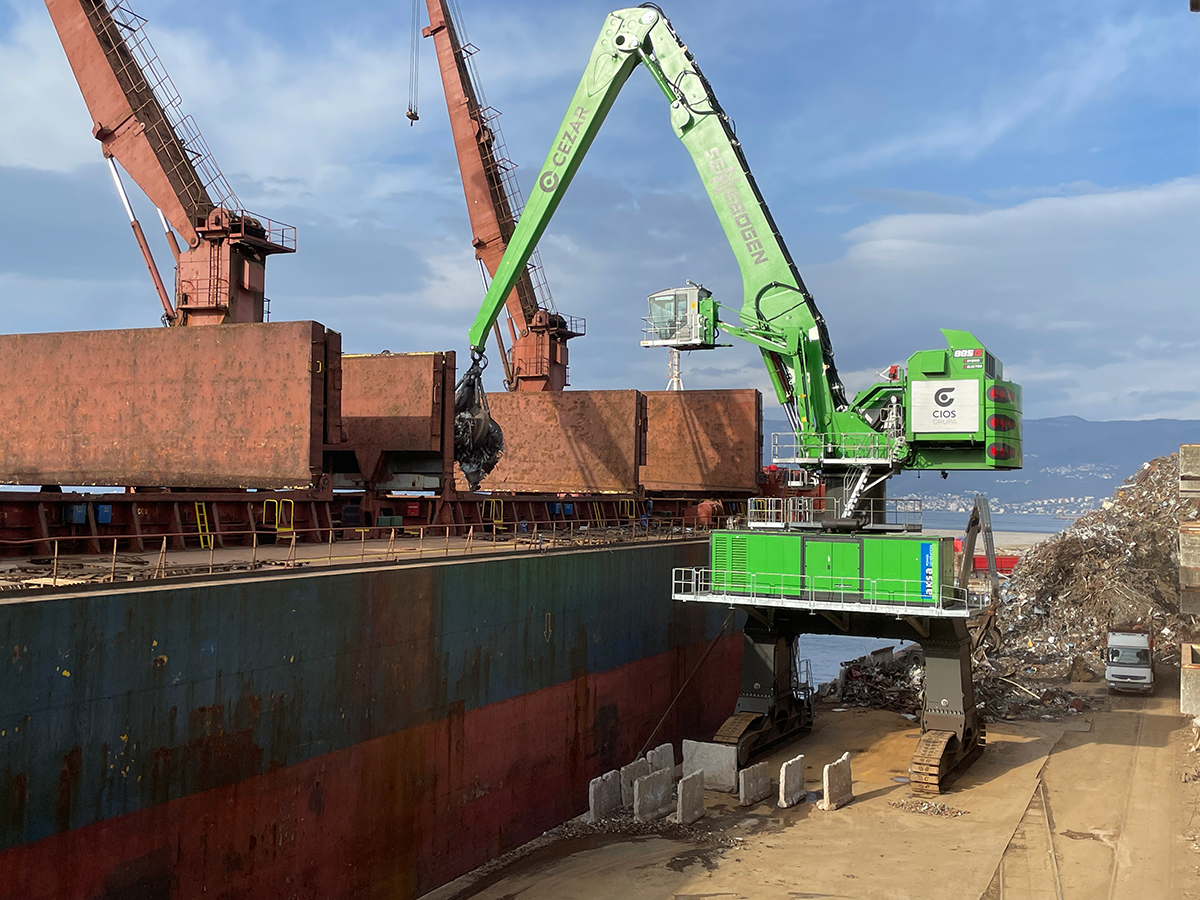 Seit Jahrzehnten hat sich Sennebogen mit kundenspezifischen Umschlagmaschinen besonders im anspruchsvollen Hafensegment einen Namen gemacht. Gerade wenn es darum geht, in möglichst kurzer Zeit Schiffe mit Schütt- oder Stückgütern zu entladen, kommen die flexiblen Hafenumschlagbagger des Straubinger Herstellers zum Einsatz. Vor allem bei den Großmaschinen bietet Sennebogen eine breite Produktpalette, die bis hin zum größten Umschlagbagger der Welt, dem 895 E, mit bis zu 420 t Einsatzgewicht und 40 m Reichweite reicht.