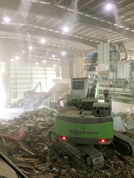 Brian Shipp und sein Vater Garry stiegen 2004 gemeinsam mit Andrew Springer in das Geschäft der Abfallverwertung ein. Mit zunehmendem Know-how über den Abfalltransport wuchs auch ihr Interesse an neuen Recyclingverfahren. Nach einem fünfjährigen Planungs- und Genehmigungsverfahren errichteten sie den neuen Betrieb von Sun Recycling mit dem Ziel, keinen Bauschutt mehr nur auf eine Deponie zu bringen. Heute werden in ihrem Betrieb an sechs Tagen in der Woche täglich 125 bis 200 Lkw-Ladungen Abfall angeliefert. Ihre Abfallcontainer werden mit Abrollkippern in der gesamten Region eingesetzt. Innerhalb der Betriebsmauern werden dann große Mengen an Bau- und Abbruchschutt, Asphalt, Schmutz, Metalle, Holz, Teppichen, Möbeln und anderen Abfällen abgeladen. Anschließend macht sich einer der SENNEBOGEN 818 Umschlagbagger an die Arbeit.