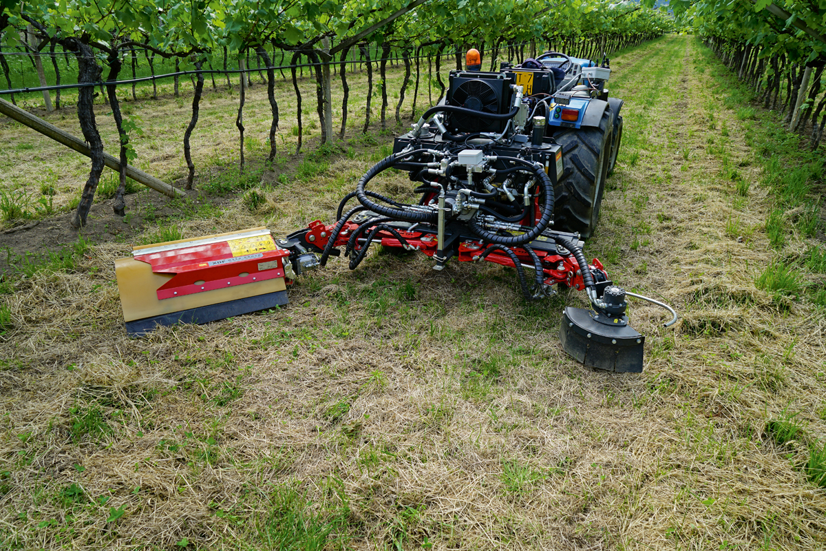 Seppi M. bietet eine Vielzahl an Anbaugeräten an, die mit »2-Fast« schnell und einfach gewechselt werden können. Mit »XTI« steht beispielsweise ein Unterstock-Mulcher für effizientes und präzises Mulchen von Unterholz und Unterstock zur Verfügung. Optional lässt sich der »XTI« mit der Unkrautbürste »XPN« ausstatten. Auch eine Rollhacke (»XRH«) und eine Unterstock-Bürste (»XSP«) stehen zur Verfügung. Das »2-Fast«-System ist mit innovativen Technologien ausgestattet, die sowohl die Effizienz steigern als auch die Kulturen bestmöglich schützen sollen. Der hydraulische Feintaster »Soft Touch« beispielsweise reduziert Schäden an Rebstöcken und Bäumen, indem das Anbaugerät automatisch nach außen gelenkt wird, um Berührungen zu vermeiden. Mit »Float«, der vertikalen Schwimmstellung der Arbeitsmodule, werden Unebenheiten im Gelände automatisch ausgeglichen. Die Anfahrsicherung »Flex-Safe« schützt das Anbaugerät vor Schäden bei unerwarteten Kollisionen mit Hindernissen. Das Modul weicht zurück und kehrt selbstständig in die Ausgangsposition zurück.j