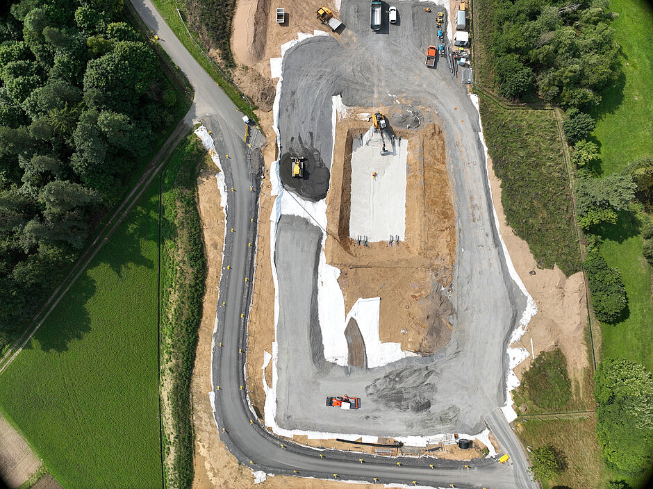 Die Vermessung zur Abrechnung hat Wayss & Freytag mit der von Sitech gelieferten Drohne DJI »Mavic M3E« vorgenommen. Diese ist mit einem Real-Time-Kinematic(RTK)-Modul für 2 bis 3 cm GNSS-Genauigkeit ausgestattet. Die Verarbeitung der Luftaufnahmen erfolgt auf der Internetplattform Trimble »Stratus«. Dazu wurden mit der Drohne Bilder von der Trasse aufgenommen und anschließend in Trimble »Stratus« geladen, um Orthofotos zu erzeugen, mit denen die Längen der Baustraßen, der Gräben und die Volumina und Massen der nach Bodenklassen getrennten Haufwerke ermittelt wurden.