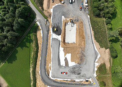 Das Projekt wird auf Basis eines Digitalen Geländemodells (DGM) eines Ingenieurbüros umgesetzt. Die Aufnahme des Urgeländes und die Datenaufbereitung für die Maschinensteuerungen erfolgte durch Baustra selbst. Auf der Baustelle kamen eine Raupe mit 3D-Steuerung sowie zwei Kobelco-Bagger mit Trimble Earthworks in Dual-GNSS-Konfiguration zum Einsatz. Mit den Maschinensteuerungen konnten die Böschungen in einem Zug nach dem DGM und ohne Herantasten an die Endform erstellt werden – inklusive der Deckschicht aus Mutterboden. Das Einmessen und Aufbauen von Böschungslehren oder Pflöcken und zwischenzeitliches Vermessen entfiel. Weil die Endform der Wälle und Böschungen nach dem Geländemodell erstellt werden können, entfielen auch Nacharbeiten und erneutes Befahren des Geländes, was aufgrund der Bodengeologie mit einem steinfreien Untergrund bei Regen auch gar nicht möglich war. Ungünstige Witterung konnte den Baufortschritt also nicht mehr beeinträchtigen. Die Übertragung aktueller Daten vom Büro auf die Maschinen und die Kontrolle des Baufortschritts erfolgen mit modernen Projekt-Management-Tools wie Trimble-Works-Manager.