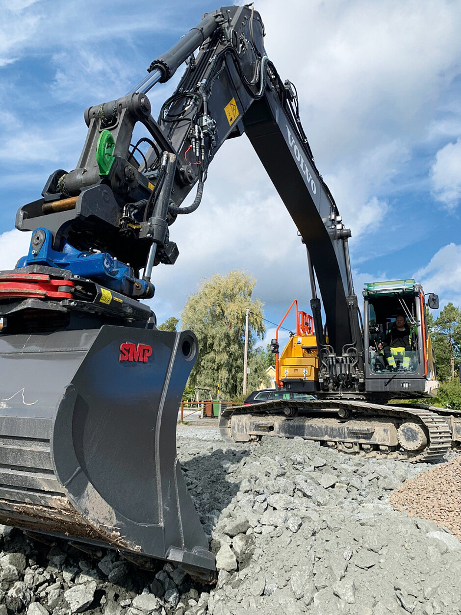 Von Markteinführung an sind die neuen Raupenbagger EC250E und EC300E von Volvo ebenso mit den Tiltrotatoren von SMP Parts kompatibel – Ergebnis einer weiteren Kooperation zwischen Volvo CE, SMP Parts und SVAB hydraulik. Volvos Smart Connect ermöglicht auch hier die Kommunikation zwischen Maschine und Tiltrotator. Wenn der Tilt an die Maschine angeschlossen wird, werden alle Funktionen und Daten per Smart Connect an die Maschine kommuniziert. Mit der DigAssist-Plattform bietet sich eine Factory-Fit-Lösung, die für die Tiltrotatoren von SMP Parts vorbereitet ist. Dies spart Zeit und ermöglicht präziseres Arbeiten sowie die Kontrolle von Bagger und Tiltrotator über den Original-Joystick. Sämtliche Informationen werden auf dem Hauptdisplay angezeigt. »Im Zuge der Zusammenarbeit bieten wir eine Plug-&-Play-Lösung an, die die Bedürfnisse von Volvo und des Kunden erfüllt. Für die neuen Maschinenmodelle haben wir neue Funktionen und Benutzerschnittstellen entwickelt, die eine einfache und effektive Steuerung der Maschine und der Anbaugeräte ermöglichen. Die Speerspitze bilden EC250E und EC300E, weitere Modelle werden folgen«, sagt Daniel Persson, Vertriebsleiter SMP Parts. t