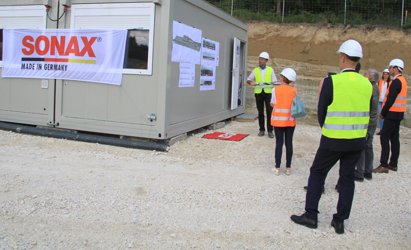 Den symbolischen ersten Spatenstich unternahm Sonax Unternehmensinhaber und Geschäftsführer Manfred Hoffmann gemeinsam mit Oberhausens Bürgermeister Fridolin Gößl und Landrat Peter von der Grün sowie Planern und Mitarbeitern der Unternehmensgruppe Hoffmann. Nach umfassenden Investitionen in den Ausbau der Logistik- und Produktionskapazitäten 2014 stößt Sonax am Stammsitz in Neuburg an der Donau an seine Kapazitätsgrenzen. Mit der Investition in den zusätzlichen Logistik- und Produktionsstandort vor den Toren der Stadt legt das Unternehmen nun den Grundstein für die weitere Expansion.