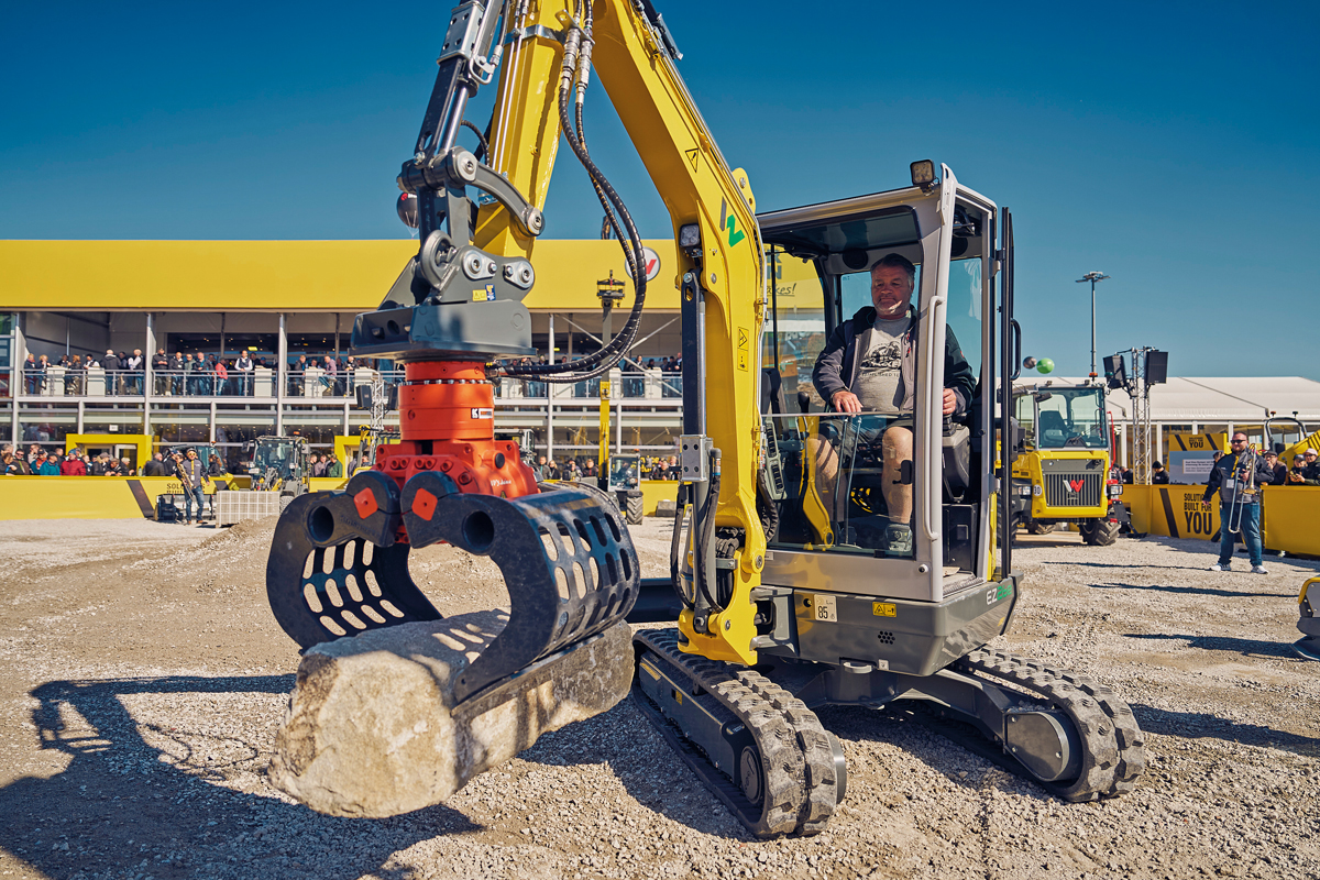 Die Ausstellungsfläche und die Demo-Arena waren bewusst anwendungsbezogen ausgerichtet. Ein sogenannter »Solutions Ring« führte die Bauma-Besucher auf einem 360°-Rundweg um den Demonstrationsbereich, wo in regelmäßigen Abständen im Rahmen einer unterhaltsamen Show die neuesten Maschinen und Geräte gezeigt wurden. Aus dem »zero emission«-Produktportfolio zeigte Wacker Neuson die beiden neuen E-Bagger »EZ26e« mit 2,6 t Nutzlast und »EZ10e« mit 1 t Nutzlast. Darüber hinaus wird erstmals eine unabhängige und TÜV-zertifizierte Batterieanalyse vorgestellt, der »Certified Battery Check«: Diese Analyse des Batteriestatus ermöglicht es Anwendern laut Wacker Neuson, den Wiederverkaufswert gebrauchter Maschinen zu steigern und über ein unabhängiges »State of Health«-Zertifikat den Batteriezustand der eigenen Maschine feststellen zu lassen.