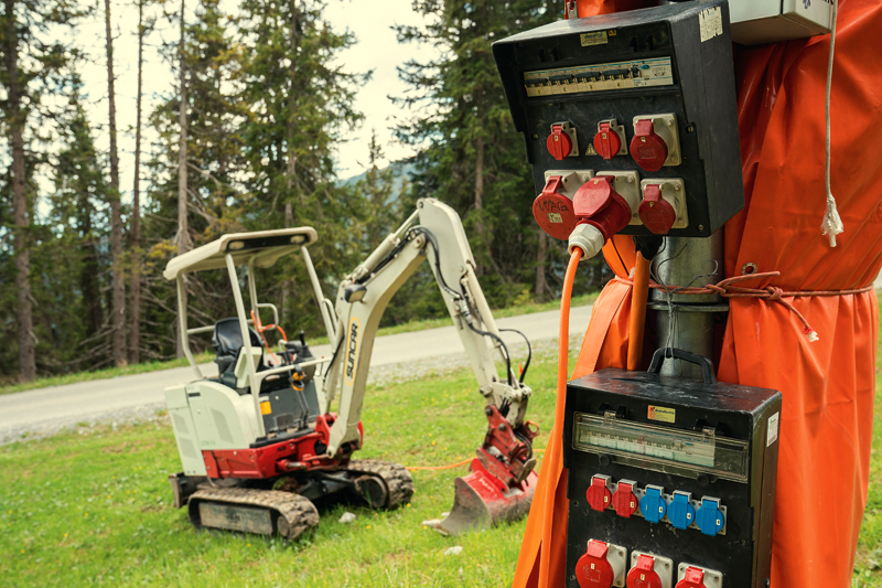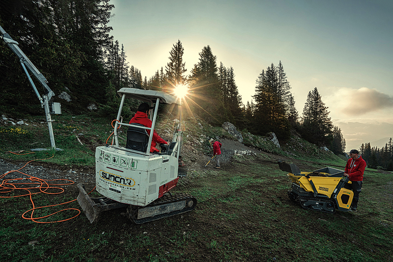 In Tourismusregionen setzt man immer mehr auf Nachhaltigkeit, viele Urlauber buchen bewusst entsprechende Ferien. Seit Jahren sind deswegen in autofreien Bergregionen, wie beispielsweise in Saas-Fee, leise und abgasfreie Elektrobagger gern gesehen. Neu werden die Bagger auch abseits von Siedlungen und Straßen eingesetzt, die einzige Voraussetzung ist ein genügend starker Stromanschluss in der Nähe.