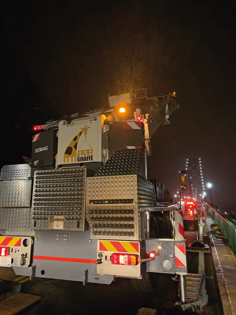 Steel Giraffe hat den AC 45 City Ende März in Empfang genommen. Beim Zuschlag für ein anspruchsvolles Projekt an der Mount-Hope-Brücke zwischen den Rhode-Island-Städten Portsmouth und Bristol waren die Vielseitigkeit und Traglasttabelle des Krans bereits von Nutzen. Die 90 Jahre alte Konstruktion wird in einem auf 52 Mio. Dollar bezifferten Sanierungsprojekt modernisiert.