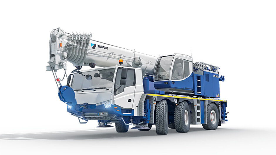 Tadano zeigt aus seinem All-Terrain-Programm neue 4- und 5-Achser. Beide entsprechen der neuen Abgasrichtlinie Euromot 5, verfügen über ein nahezu identisches modulares Oberwagenkonzept sowie einen neuentwickelten Hauptausleger. Tadano führt mit den beiden All-Terrain-Kranen sein 2-Motoren-Konzept fort. Es soll für die zu jedem Zeitpunkt optimale Auslastung der Motoren sorgen, die auch für Krane jeder Klasse immer bedeutender wird durch Abgasnachbehandlungssysteme mit Adblue. Sind Kranmotoren nicht optimal ausgelastet, müssten hingegen, so der Hersteller, deren Abgassysteme regelmäßig freigebrannt werden.