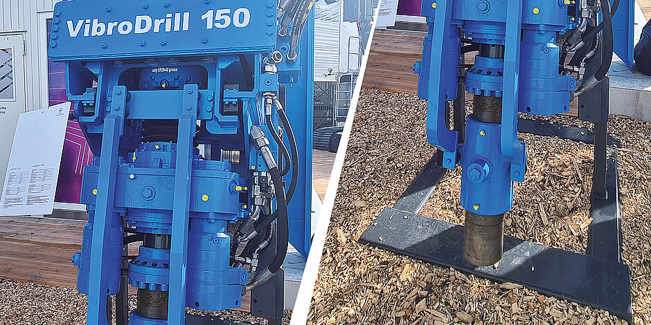 Das Unternehmen hält die komplette Maschinentechnik zum Einbringen von Spundwänden, Rohren, Trägern und anderen Rammprofilen für leichte bis schwere Rammarbeiten bereit. Hinzu kommen Bohrantriebe für nahezu jeden Einsatzbereich im Tief- bzw. Spezialtiefbau. Das Portfolio reicht von den terra-Bohrhämmern, Drehantrieben und Doppelkopfbohranlagen (Ex-Krupp) bis hin zu den neuartigen VibroDrills. »Je nach Anforderung vor Ort bieten wir die passenden Maschinen in vielen Varianten und Leistungsgrößen an. Neben den RTG-Mäklergeräten setzen wir mit der Müller-Ramm- und -Ziehtechnik auf eigene Produkte«, erklärte Alexander Wagner, Produkt-Manager Müller Vibrationstechnik.