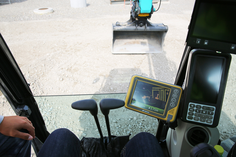 Sobald das dreidimensionale Geländemodell erstellt ist, kann die weitere genaue Planung der Baustelle erfolgen. Ein Ist- und ein Soll-Modell stehen durch den flüssigen Datentransfer zwischen Planern und Projektleitern als auch den Maschinen, die mit Maschinensteuerung ausgerüstet sind, zur Verfügung. Dann können Bagger, Dozer & Co. anrollen und mit dem Aushub und der Geländeebnung beginnen – und die Baggerfahrer orientieren sich am Soll-Modell, das ihnen auf dem großen Display alle Löffelbewegungen in Echtzeit anzeigt. So ist garantiert, dass immer nur an der korrekten Position auf der Baustelle die notwendige Menge an Material bewegt wird.