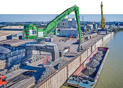 Die 24 m langen Stahlrohr-Casings bestehen aus je zwei 12 m Segmenten, die jeweils im Arbeitsverlauf zusammengeschweißt wurden. Um dem Verlauf der HDD-Bohrungen genau zu entsprechen, mussten sie in einem Neigungswinkel von exakt 14 Grad und in der Sollrichtung der Bohrungen eingeschlagen werden. Als Startrampe hatte LMR eigens eine mobile, 6 m hohe Konstruktion aus Stahlträgern gebaut. Darauf wurde mithilfe eines Schwerlastkrans zuerst ein Rohrsegment in die Führungsschienen gelegt, dann die Taurus-Ramme dahinter positioniert und nach Anweisung der Geräteführer zentimetergenau ausgerichtet. Anschließend wurden sog. Schlagsemente in die Öffnung des Stahlrohrs montiert und die Ramme schub- und zugfest damit verbunden. Nachdem das erste 12 m Segment sukzessive Schlag für Schlag mit teils voller Schubleistung tief genug eingerammt war, wurde die Ramme gelöst, das zweite Segment angeschweißt, mit dem erneut in Position gebrachten Taurus verbunden und bis zur bohrbaren Bodenschicht vorgetrieben.