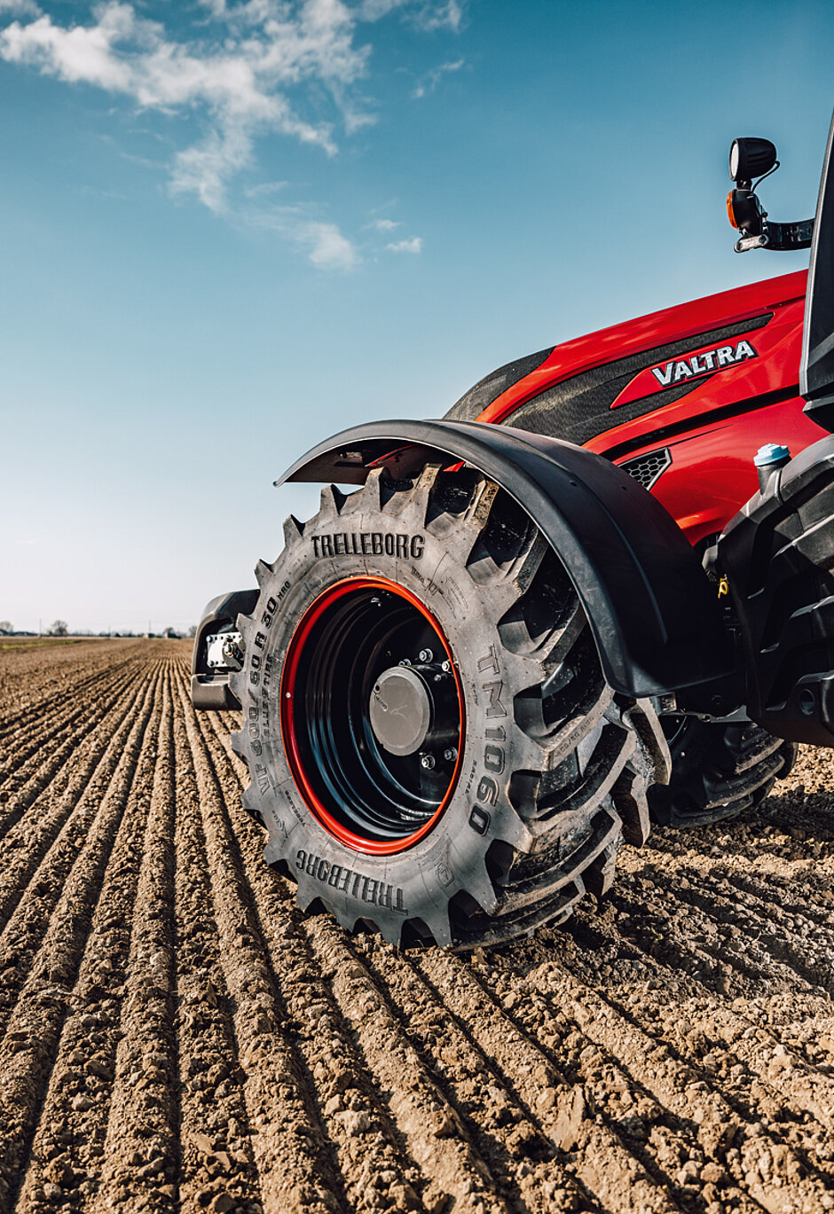 Anlässlich des 70. Geburtstags von Valtra hat Trelleborg mit seiner »YourTire«-Reifenpersonalisierungslösung TM1060-Reifen mit Valtra-Jubiläumslogo kreiert. Mit »YourTire« bietet Trelleborg die Möglichkeit, TM-Radialreifen für Traktoren mit einem eigenen Namen oder Logo zu personalisieren. Diesen Weg wählte der Anbieter von Reifen und Kompletträdern für Off-Highway-Fahrzeuge auch bei der Bereifung der limitierten und in charakteristischem tiefem Metallic-Rot gehaltenen Jubiläumsauflage der T-Serie von Valtra. t