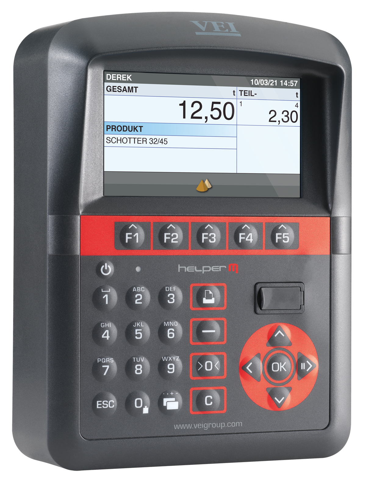 Im Repertoire hat VEI beispielsweise On-Board Wägesysteme wie »HelperM«: Das Einstiegsmodell steht für hohe Sicherheit, einfache Bedienung und optimale Beladung. Mit »HelperX« bietet sich hingegen eine High-End-Lösung, die speziell für Produktion, Umschlag und Verkaufsüberwachung entwickelt wurde – bei »HelperXE« handelt es sich um ein System, das für seine eigene Sensorik auf CANBUS-Technologie zurückgreift und auf Hydraulikbagger sowie Müllfahrzeuge zugeschnitten ist. Und auch für die eichfähige Verwiegung hat VEI ein Einstiegsmodell entwickelt: Mit »Millennium5« bietet sich ein System zur Produktionsüberwachung und Beladung, das als zuverlässig und hochpräzise gilt. Um das Wägesystem hingegen mit einem effektiven Überladungsschutz zu kombinieren, hat VEI »trueload« für Last- und Lieferwagen auf den Weg gebracht. Im Portfolio hat der Hersteller allerdings auch »Vkiosk« für die professionelle Zugangskontrolle und den Empfang von Ladeaufträgen sowie »Ipotweb.com«, ein leistungsstarkes Onlineportal – es verbindet die Lademaschinen, um Bewegungen in Echtzeit zu empfangen und Ladeaufträge zu senden.