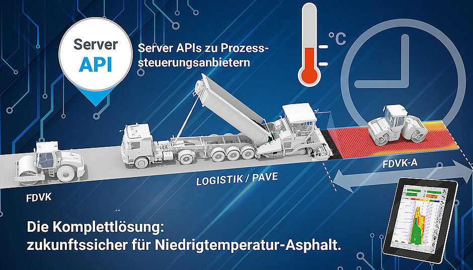 - Um die optimale Qualität des Belags zu sichern, gilt es alle Prozessschritte des Einbaus zu optimieren. Der temperaturreduzierte Asphalt hat ein wesentlich verkürztes Zeitfenster für die Verdichtung. Daher müssen alle Prozesse optimal aufeinander angestimmt sein.