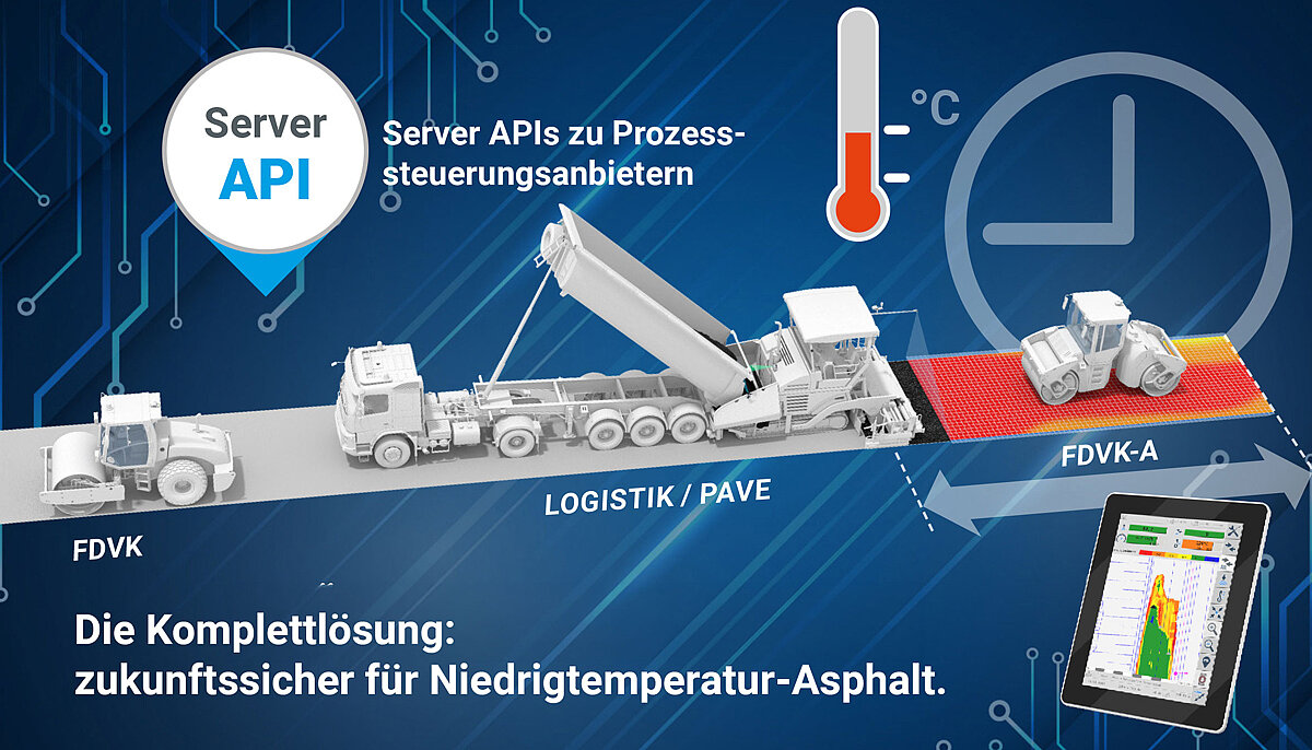 - Die Verdichtungskontrolle erfolgt während der Überfahrt und wird live auf die Displays in die Fahrerkabinen der Walzen übertragen.