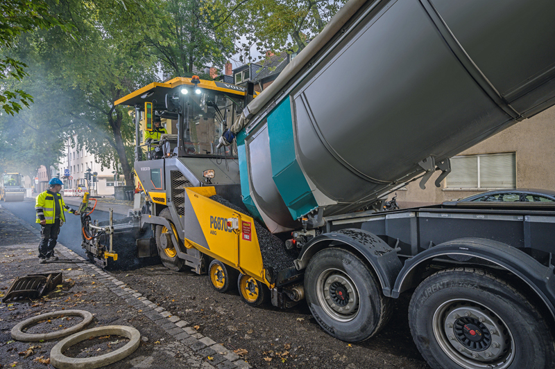 Der Fertiger ist zudem mit Antriebsarten »Einbau«, »Manövrieren« und »Transport« ausgestattet. Der Eco-Modus ist die Standardeinstellung. Diese adaptive Drehzahlregelung senkt den Geräuschpegel und soll den Kraftstoffverbrauch um bis zu 30 % reduzieren.