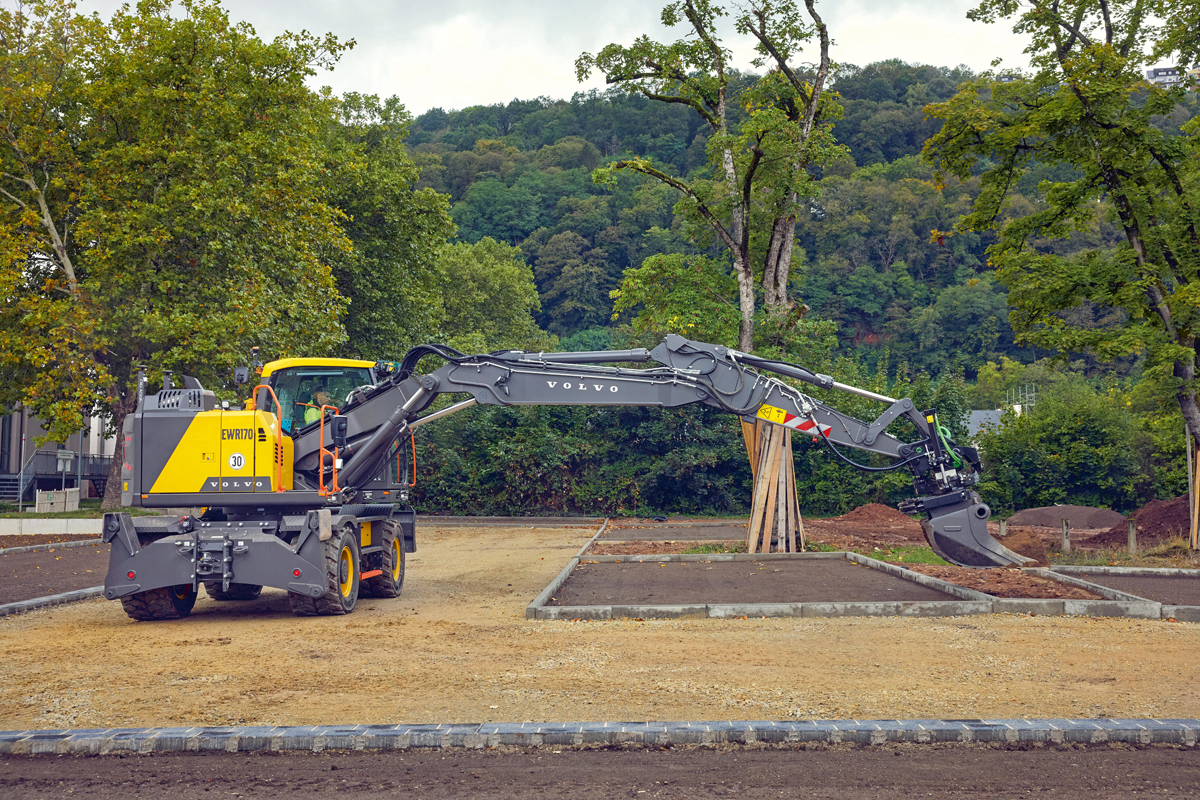 Die Verbesserungen gegenüber den Vorgängern betreffen u. a. eine größere Reichweite, eine höhere Hubkapazität, eine Verringerung des vorderen Schwenkradius um mehr als 0,5 m und eine um 10 Prozent höhere Motorleistung beim »EWR150«. Im Modelljahr 2026 wird zudem eine von Volvo patentierte, elektrisch einklappbare Leiter eingeführt, ebenso eine neue Vierradlenkung. Mit dem laut Volvo CE kürzesten Heckschwenkradius ihrer Klasse, kombiniert mit einem reduzierten Frontschwenkradius, sind die Mobilbagger »EWR150« und der »EWR170« »die perfekten Maschinen für Arbeiten in städtischen Umgebungen und auf engstem Raum«.