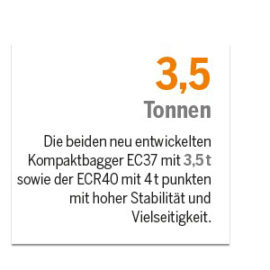 Vielfältig, kraftvoll und effizient: Volvo führt mit dem 3,5-Tonner EC37 und dem 4-Tonner ECR40 zwei neue Kompaktbagger ein. Gemeinsamer Nenner: hohe Stabilität, maximaler Komfort und erhöhte Produktivität.