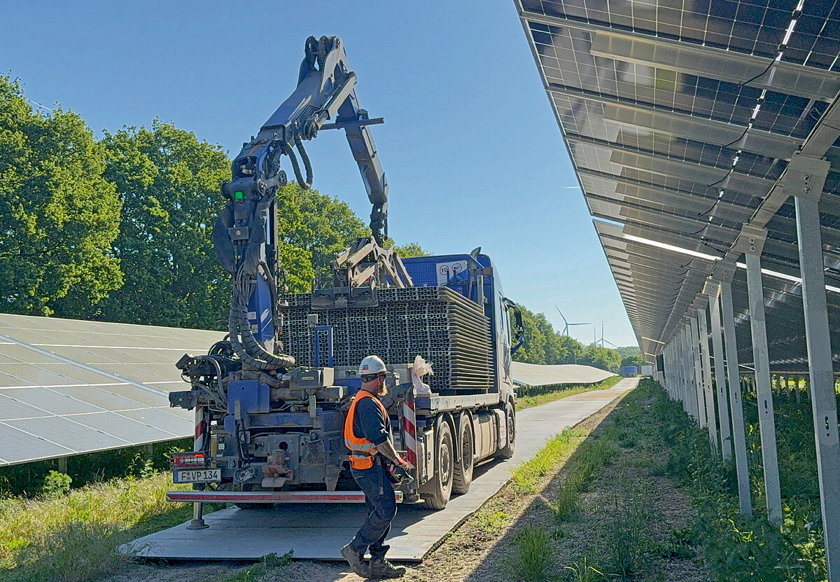 Laut Umweltbundesamt wurden bis Ende 2024 etwa 45 000 ha Photovoltaik-Freiflächenanlagen installiert. Bei der Standortwahl sind verschiedene Faktoren entscheidend. Eine geeignete Fläche liegt idealerweise Richtung Süden, ist wenig verschattet und nicht zu stark geneigt. Auch muss die Bodenbeschaffenheit für die Montage geeignet sein. An dieser Stelle bieten die Aluminium-Panels von Vp TPA Mobile Straßen Flexibilität bei der effizienten Projektumsetzung. Die Panels bewahren den Untergrund vor Verdichtung und sorgen dafür, dass Fahrzeuge den Bereich während der Montage problemlos befahren können – beispielsweise, wenn es um die Anlieferung der Transformatorenstation geht.