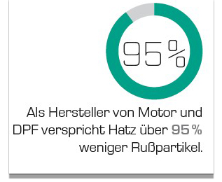 Während des Maschinenbetriebs regeneriert sich der Dieselpartikelfilter, kurz DPF, selbstständig von dem zuvor gebundenen Ruß. Hohe Abgastemperaturen gewährleisten dabei die Selbstreinigung des Filters. Die Neuentwicklung wird platzsparend anstelle des Standard-Schalldämpfers verbaut. Grundlage für den Einbau und die Verwendung des Dieselpartikelfilters sind die Dieselmotoren der E1-Baureihe mit elektronischer Motorsteuerung.