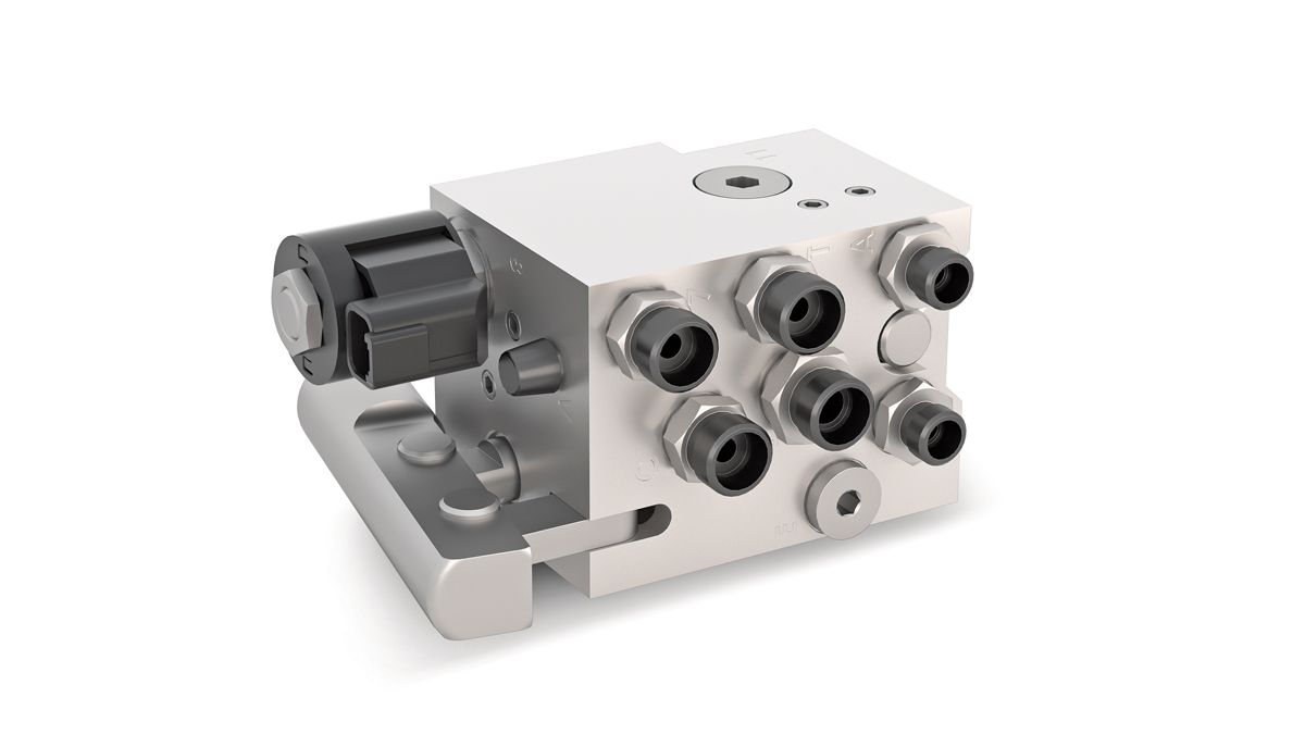 Der weiterentwickelte hydraulische Steuerblock für Bremslösung von Weber-Hydraulik wird durch ein Magnetventil gesteuert. Bei Stromausfall ist es dadurch möglich, die Bremse durch ein manuelles Umschaltventil und eine Handpumpe auch ohne Energieversorgung zu lösen. Je nach Anforderung kann der Steuerblock modular auch um die Möglichkeit erweitert werden, die Motorhaube zu öffnen oder eine Fahrerkabine zu kippen. Der Steuerblock findet bislang Anwendung in Baumaschinen, kann aber grundsätzlich für jede Fahrzeugsparte wie Lkw oder Landmaschinen adaptiert und individuellen Kundenwünschen angepasst werden.