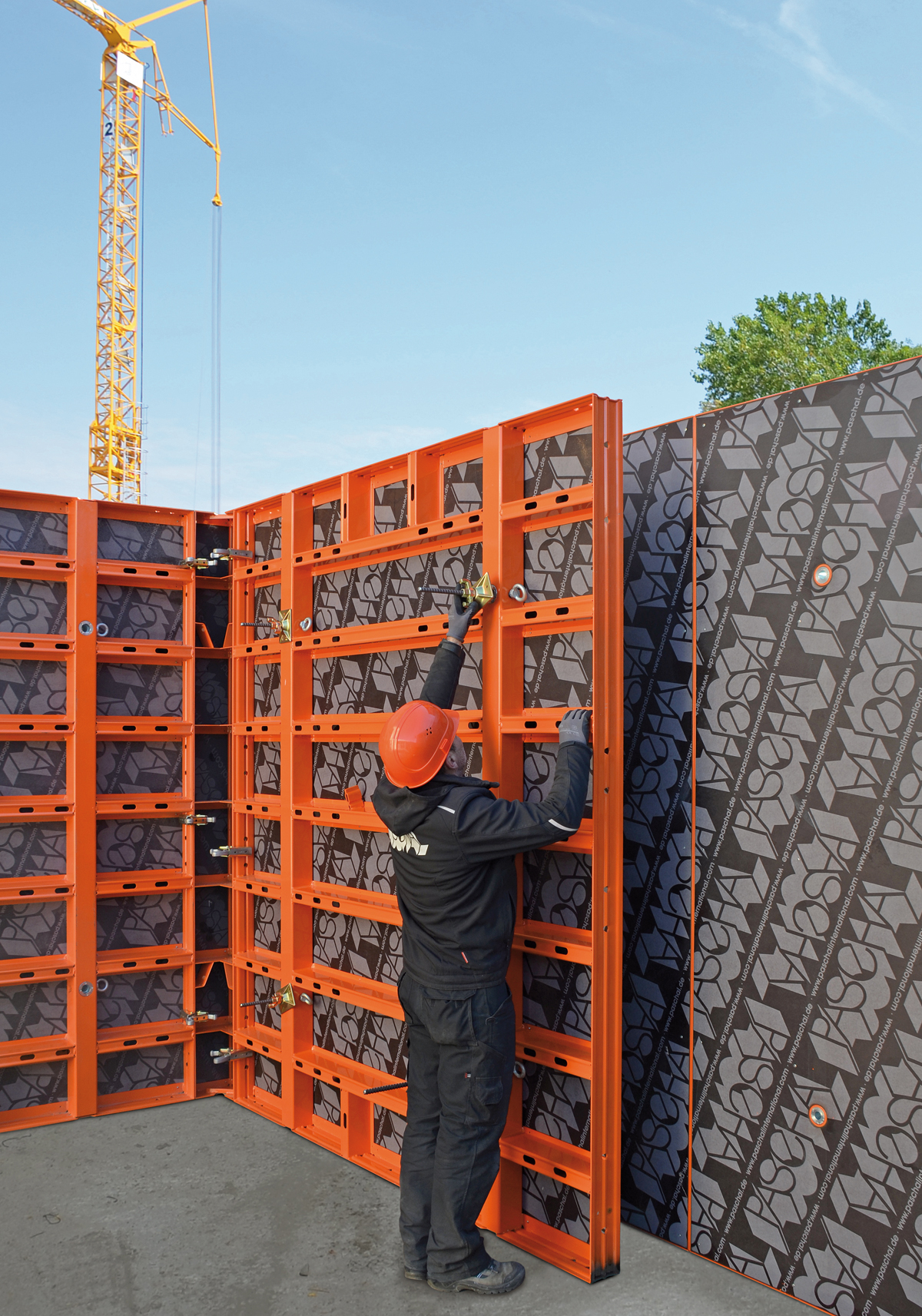 Tatsache ist, dass der Schalungsmarkt gerade im deutschsprachigen Raum hart umkämpft, aber eben auch stark vertreten ist. Das auffallend hohe Qualitätsniveau der einzelnen Systeme lässt sich in erster Linie auf den Einsatzbereich zurückführen. Seien es Wände, Säulen oder Decken: Geht es um Stabilität, Zuverlässigkeit, Tragkraft und Beständigkeit versteht der Betonbau keinen Spaß. Hier muss hochprofessionell gearbeitet werden, um die Robustheit und Langlebigkeit von Bauwerken garantieren zu können. Und genau hier nimmt der Beton und damit das perfekte Schalen eine im wahrsten Sinne des Wortes »tragende« Rolle ein. Die Hersteller blicken auf langjährige Erfahrungswerte zurück und mussten sich in den vergangenen Jahrzehnten stetig weiterentwickeln – denn die Anforderungen am Bau sind gewaltig gestiegen. Ein Schalungssystem muss zum einen zuverlässig, stabil und langlebig sein, darf gleichzeitig aber auch nicht schwerfällig, starr und kompliziert daher kommen. Das Stichwort hierbei lautet Flexibilität: Ein schnelles Ein- und Ausschalen ist ebenso wichtig wie die Wiederverwendbarkeit möglichst vieler Komponenten und der unkomplizierte Transport. Wie also eine Schalung konzipieren, die nicht kaputt geht, dafür federleicht daher kommt? Gleichzeitig müssen heutige Schalungslösungen teils komplizierten Geometrien entsprechen, sich architektonischen Glanzleistungen anpassen und natürlich kostengünstig genug sein, ohne dabei auf eine hohe Qualität zu verzichten. Oder anders gesagt: Die Schalungsbranche ist unter Zugzwang.