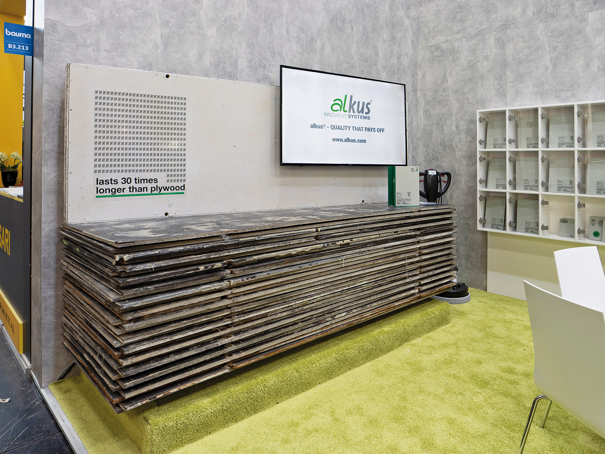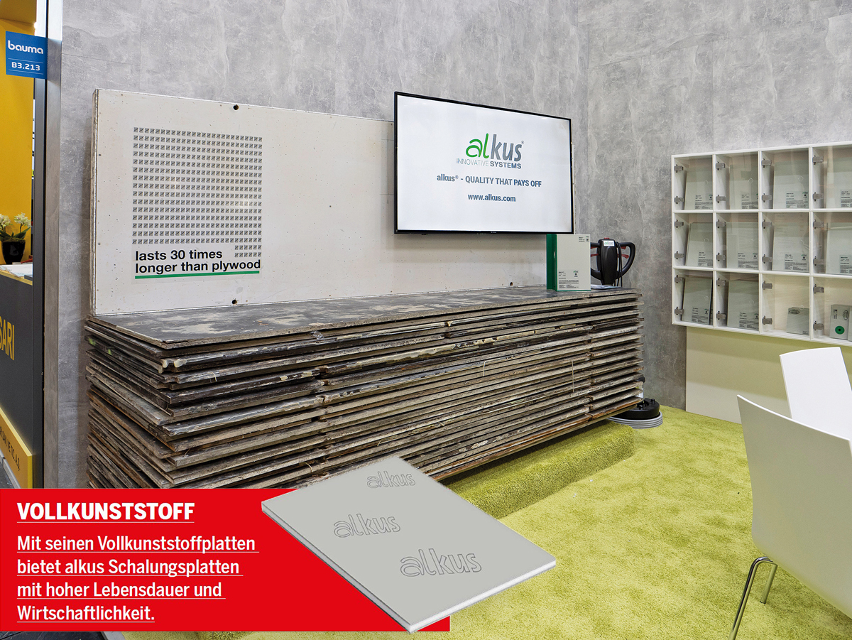 Auf der bauma 2022 hatte alkus anschaulich aufgezeigt, warum die Kunststoffplatten gewaltige wirtschaftliche Vorzüge gegenüber klassischen Holzvarianten haben.