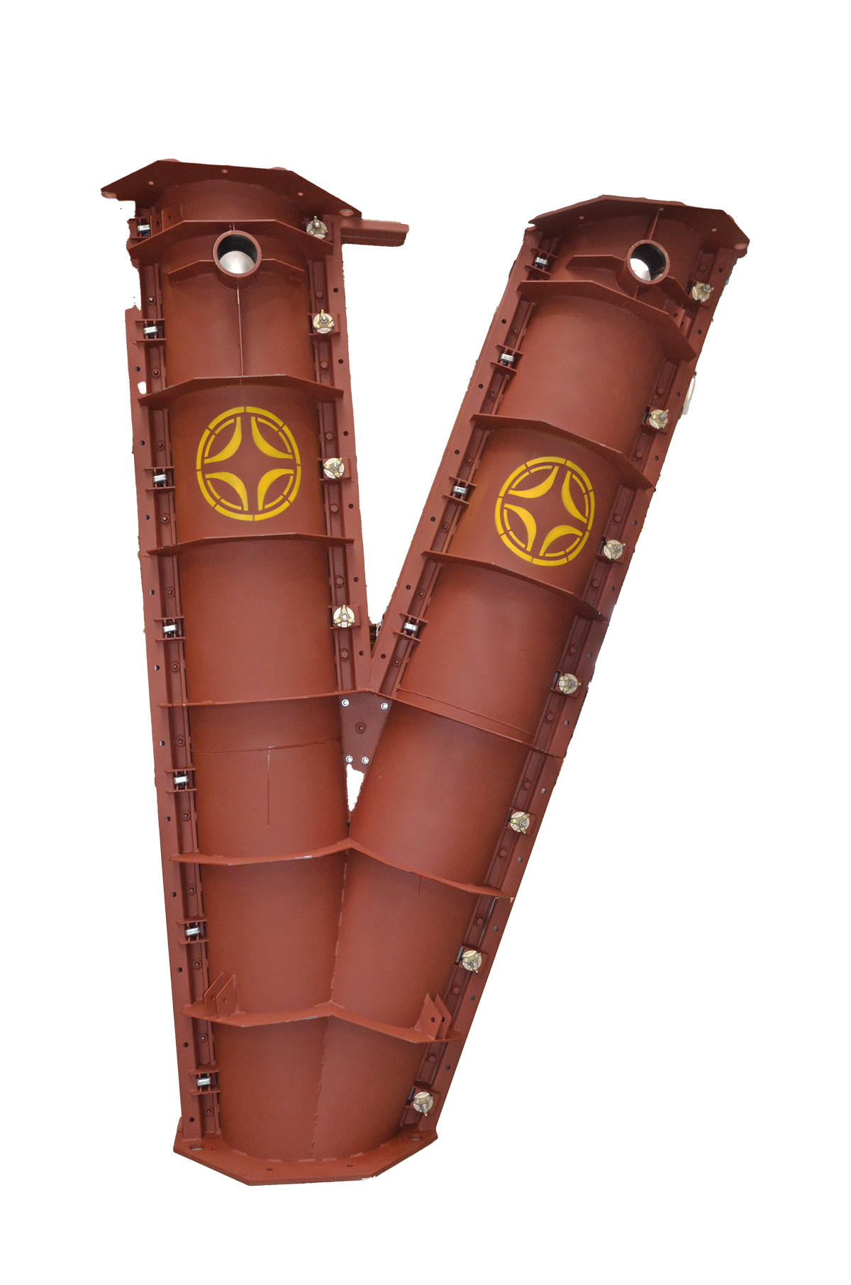 Die Rundschalung ist mit Mehrschichten-/Finnenplatten mit 18 mm für hohe Einsatzhäufigkeit belegt. Formstabilität erhält das System laut Tobler durch den Einsatz von »Roundex«-T-Riegeln. Im Programm von Tobler finden sich darüber hinaus auch Trägerschalungen wie »ToblerRex TS12« für Brückenwiderlager, Stützwände und Pfeiler. Diese sind ideal für Betonoberflächen mit erhöhten Anforderungen geeignet. Durch die maßgeschneiderte Trägerschalung sollen komplexe Sichtbetoneinsätze mit vorgegebenen Fugenbildern und Ankeranordnungen realisiert werden. Mit »ToblerTower« wiederum bietet der Hersteller Schwerlaststützen mit denen Höhen von über 12 m sehr schnell realisierbar sind. Das System verfügt über austauschbare Endplatten, hohe Tragfähigkeit bei geringem Eigengewicht sowie Auszugslängen von 6,2 m bei lediglich 31 kg Gewicht. Gefertigt werden die Schwerlaststützen aus Aluminium.