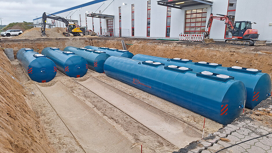 Die vorhandenen Lagerkapazitäten am Mineralölwerk auf dem Betriebsgelände von Hoyer im niedersächsischen Visselhövede reichten nicht mehr aus und mussten deutlich erweitert werden, um ausreichend Platz für die Produkte zu schaffen. Zu den Mengen, die für die Belieferung der Kunden benötigt werden, kommen in der Funktion als exklusiver Vertriebspartner von Texaco in Deutschland weitere große Mengen an Schmierstoffen hinzu. Deshalb entschloss sich die Geschäftsführung, in ein großes neues Tanklager zu investieren. Die neuen unterirdischen Lagerbehälter sind unterschiedlich gekammert. Mit der Unterteilung in verschieden große Abschnitte bietet das Tanklager bei einem Gesamtvolumen von 800 000 l jetzt Platz für Produkte in Mengen bis 50 000 l. Doch mit der Positionierung der Tanks im Boden ist nur eine erste Phase der Arbeiten abgeschlossen. Wenn die Baugrube bis zur Oberkante der Tanks verfüllt ist, müssen die Leitungsbauer ran. Schließlich müssen Verbindungsleitungen für das Befüllen und die Entnahme der Produkte gelegt werden. Das Rohrsystem wird am Ende mehrere Kilometer lang sein. Als geschäftsführender Gesellschafter von Hoyer erklärt Thomas Hoyer: »Mit dem jüngsten Bauvorhaben stärken wir nicht nur die Versorgungssicherheit, wir investieren auch in die Zukunft des Standortes. Wenn wir das Gesamt-Lagervolumen von 4,4 Mio. l allein für den Schmierstoff- und AdBlue-Bereich betrachten, haben wir auch mit Blick auf die Zukunft alle Möglichkeiten, in diesem Segment weiter zu expandieren.«j