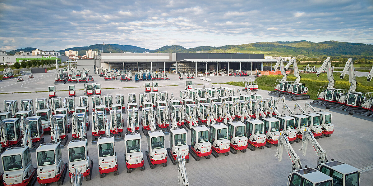 Wichtige Meilensteine waren z. B. der »TB 1000«, der erste hydraulische Takeuchi-Minibagger mit 360° drehbarem Oberwagen. Mit der Laderaupe »TL 10« begann 1986 die Mechanisierung des Materialtransports auf Baustellen. 1994 folgte der erste 7-t-Mobilbagger »TB 070 W« und 1995 der »Nullheckbagger« – das erste Minibaggermodell, bei dem das Heck seitlich nicht über die Ketten hinaus drehte. 2024 wurde der erste Elektrobagger vorgestellt. Es folgten technische Neuerungen wie die Laufwerkserweiterung, elektronische Vorsteuerung u.v.m. Neben der Technik kommt es aber auch auf die Wirtschaftlichkeit an. Wilhelm Lämmermann, Geschäftsführer der Gebr. Mayer GmbH + Co. KG, Fürth, beschreibt: »Damals wie heute liefert Takeuchi sehr gute Maschinenqualität. Da stimmt das Zusammenspiel aller Komponenten. Mit gut abgestimmten Maschinen und feinfühliger Steuerung lässt es sich besonders wirtschaftlich arbeiten. Ein Takeuchi kann ohne Probleme 12 000 Stunden arbeiten.« Auch der Generalimporteur blickt mit guten Gefühlen auf eine erfolgreiche und rasante Entwicklung. 1985 startete die Wilhelm Schäfer GmbH mit einer Mannschaft von zehn Personen, wuchs in der Folge kontinuierlich und zog von Heppenheim an einen größeren Standort nach Mannheim. Die Verhoeven-Gruppe wurde 2014 Eigentümer. Ende 2020 bezog Schäfer auf einem wiederum deutlich größeren Gelände in der Ursprungsstadt Heppenheim einen neu gebauten Firmensitz. Heute sind über 100 Mitarbeiter für Händler, Endkunden und Interessierte da. Eine ähnlich positive Entwicklung beschreibt Katrin Schmittinger, Geschäftsführerin der Baumaschinen Schmittinger GmbH aus Köngen: »Wir haben mit der Firma Wilhelm Schäfer schon vor 1985 zusammengearbeitet. 1985 integrierten wir dann die ersten Takeuchi-Minibagger in unseren Mietpark und unser Verkaufsprogramm. Die durchdachte Konstruktion und die praxisnahen Details (schon damals gab es serienmäßig eine Hammerleitung) trafen exakt unseren schwäbischen Qualitätsanspruch. Bis heute, 40 Jahre später, konnten wir über 1 000 Takeuchi-Baumaschinen ver kaufen und haben aktuell 260 Takeuchi-Bagger und Lader im Mietpark.«s