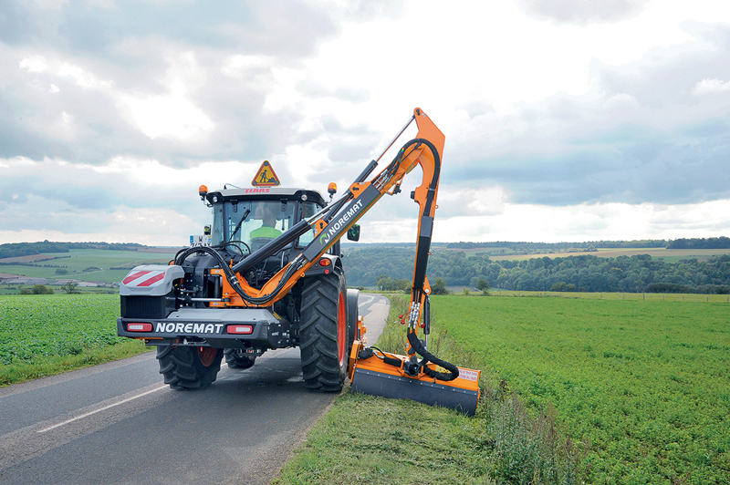 Als Anbaugeräte sind – abhängig von der Baureihe – unterschiedliche Mähköpfe für Gras und Gestrüpp, Astsägen und Astscheren sowie Grabensohlefräsen verfügbar. Bei der Baureihe Malinia handelt es sich um den kleinsten Noremat-Ausleger mit einer seitlichen Reichweite von 4,2 m. Der größte Ausleger des Modells Magistra verfügt über eine Reichweite von bis zu 8,3 m. Ausgediente Geräte werden von Noremat aufbereitet, Verschleißteile ausgetauscht und anschließend mit neuem Typenschild versehen, um diese Altgeräte dann mit einer sechsmonatigen Garantie generalüberholt wieder anzubieten. t