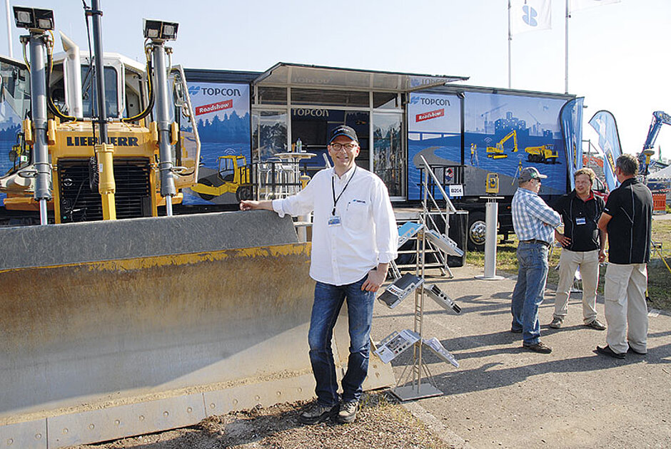 So präsentierte das Unternehmen unter anderem eine Raupe mit einer intelligenten Schildsteuerung, die mittels eines Beschleunigungssensors den Zeitpunkt des nächsten Steuerbefehls exakt vorausberechnet und so die Exaktheit des Planums und die Arbeitsgeschwindigkeit signifikant verbessert. Außerdem stellte Topcon im Rahmen der täglichen Demo-Shows auf der Messe sein neues Nivellierungssystem für Deckenfertiger zur Steuerung von Höhe und Neigung der Bohle vor, mit dem Anwender noch exaktere Einbauergebnisse erzielen können.