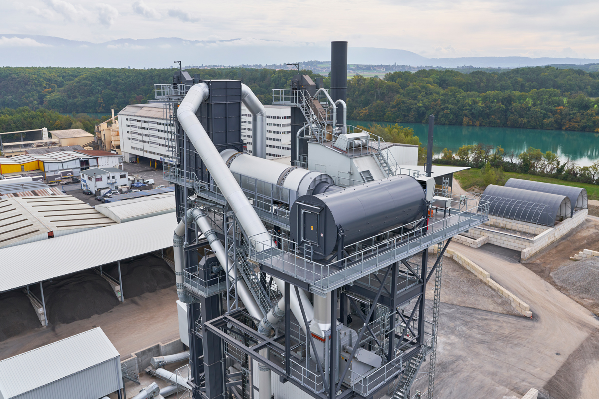 Mit der neuen Anlage möchte der Kunde den Ausstoß der CO₂-Emissionen über den Recyclinganteil und die eingesetzten Brennstoffe sowie die Gesamtkohlenstoff-Emissionen (Cges) über den Einsatz der Heißgaserzeuger-Technologie signifikant reduzieren, um den Vorgaben des neuen Schweizer CO₂-Gesetztes zu entsprechen und die strenge Luftreinhalteverordnung (LRV) in allen Punkten zu erfüllen. Mithilfe der Recyclingtrommel mit Heißgaserzeuger lassen sich die geforderten Grenzwerte nicht nur einhalten, sondern sie ermöglicht auch bei zukünftigen Gesetzesverschärfungen die Einhaltung neuer Grenzwerte.