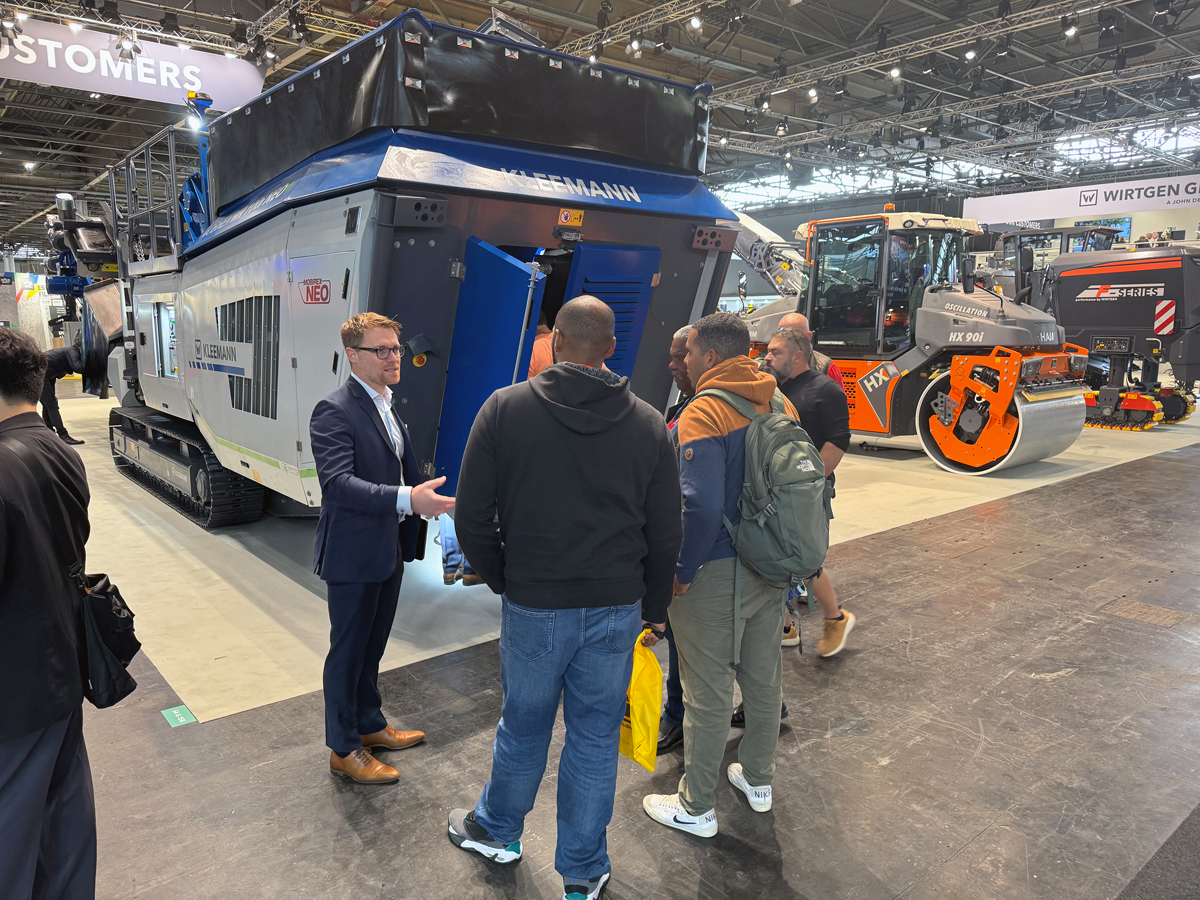 Zu den Messe-Highlights zählten zwei Exponate, die erstmals auf einer Messe in Frankreich ausgestellt wurden. Die neuen mobilen Prallbrecher Mobirex MR 100(i) NEO/NEOe von Kleemann erregten große Aufmerksamkeit. Die Maschine ist effizient, leistungsstark und äußerst flexibel. Der mobile Prallbrecher kann in der NEOe Variante vollelektrisch betrieben werden.