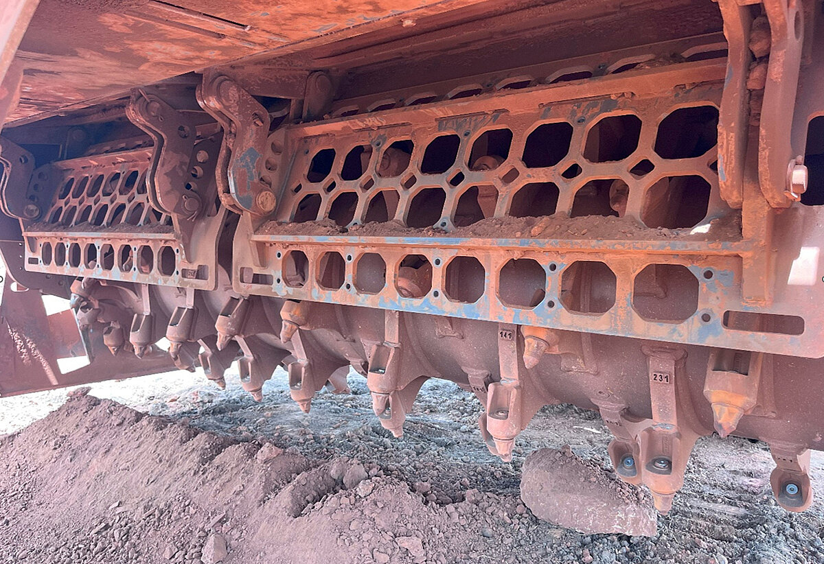 Das Herzstück des VIS ist ein geteiltes Prallblech, das direkt am Schneidwalzengehäuse montiert ist. Dieses Blech ist mit zwei wichtigen Verstellmechanismen ausgestattet, die eine präzise Kontrolle des Materials ermöglichen, das durch das System geleitet wird. Der variabel einstellbare Spalt zwischen der Platte und der Schneidwalze ist der erste Verstellmechanismus: Dieser Spalt lässt sich in fünf Stufen einstellen, um den Grad der zusätzlichen Zerkleinerung zu steuern und damit die Partikelgröße zu verändern. Mit einem kleineren Spalt wird eine stärkere Zerkleinerung und somit ein feineres Material erreicht, während bei einem größeren Spalt ein gröberes Material erzeugt wird. Die Verstellung erfolgt durch einfaches Vergrößern oder Verkleinern des Spalts und dem Arretieren der Platte mit Stiften, was etwa 10 Minuten dauert. Der zweite Verstellmechanismus betrifft die Löcher im Abstreifer. Je nach den spezifischen Anforderungen des jeweiligen Vorgangs können sie in vier verschiedenen Einstellungen mithilfe von Abdeckungen geöffnet oder geschlossen werden. Diese beiden Mechanismen ergänzen die grundlegenden Verstellmöglichkeiten des Surface Miners, wie beispielsweise die Vorschubgeschwindigkeit der Maschine, die Schneidwalzendrehzahl und die Schnitttiefe. In Kombination mit dem VIS wird dadurch eine äußerst präzise Steuerung der maximalen Partikelgröße erzielt.